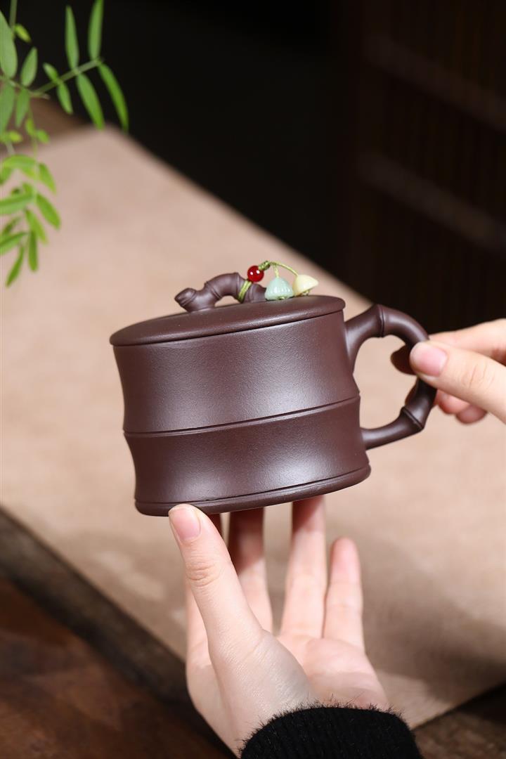 260cc原礦紫泥竹段蓋杯茶杯POT10076