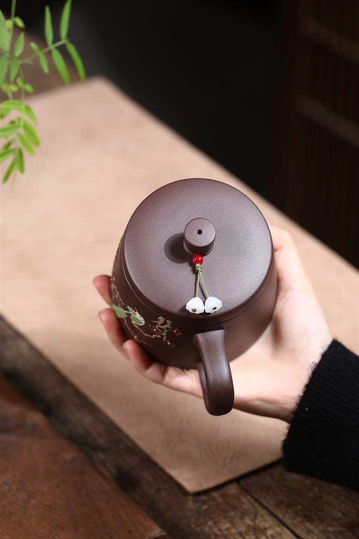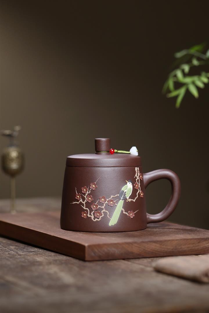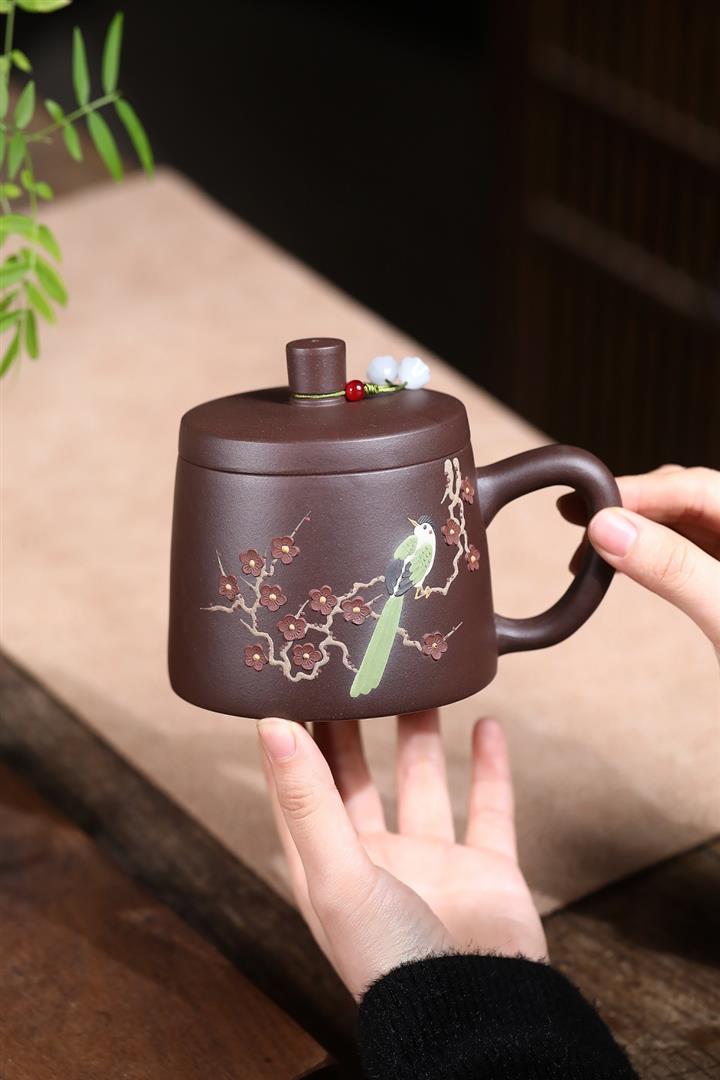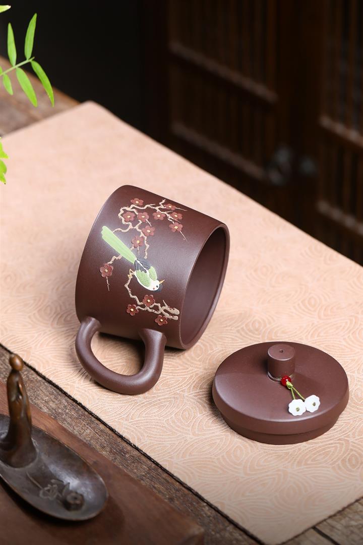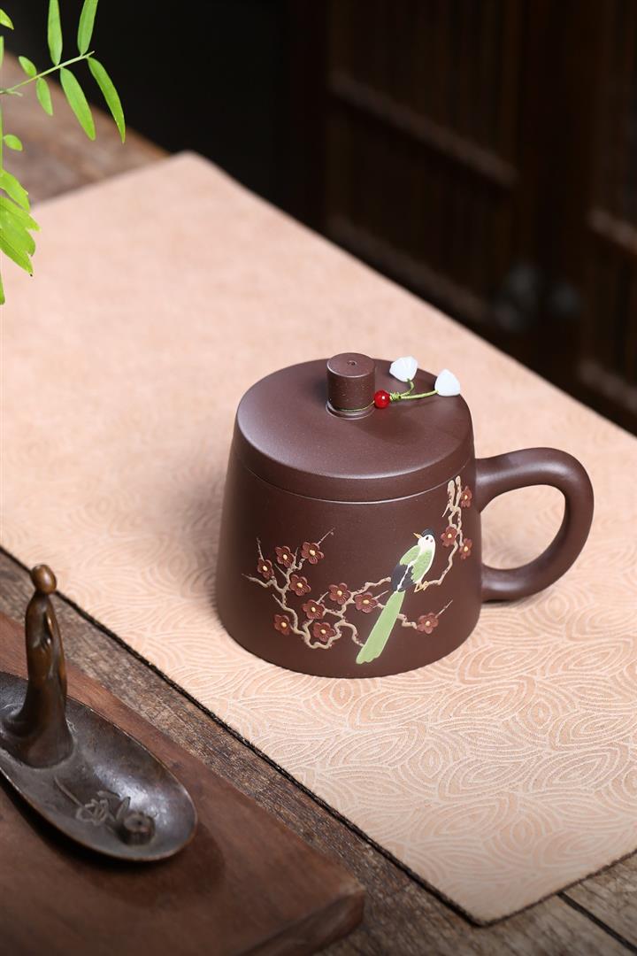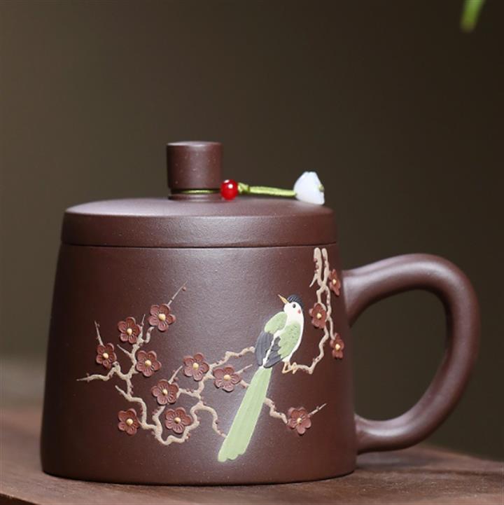 350cc原礦紫泥喜上眉梢蓋杯茶杯POT10077