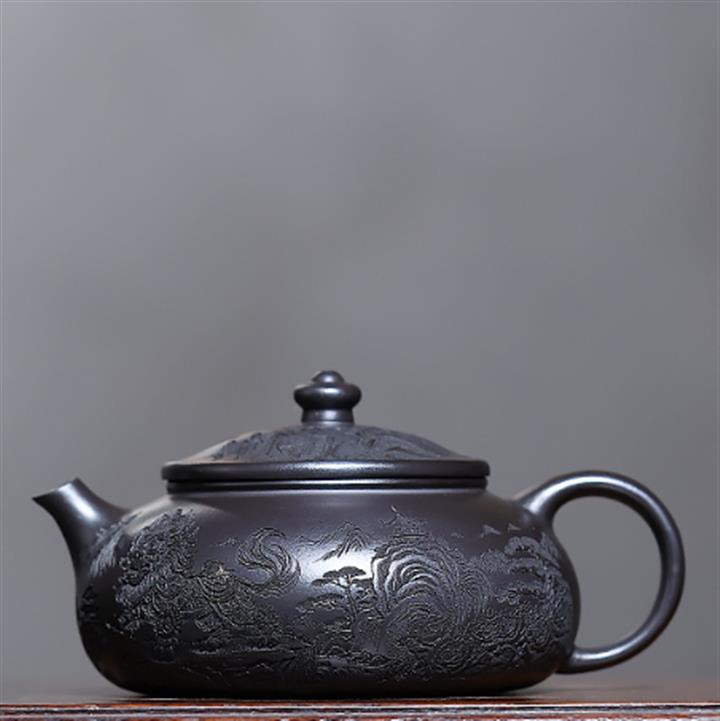 250cc原礦玄鐵石黃獅舞寒江泡茶壺POT10138