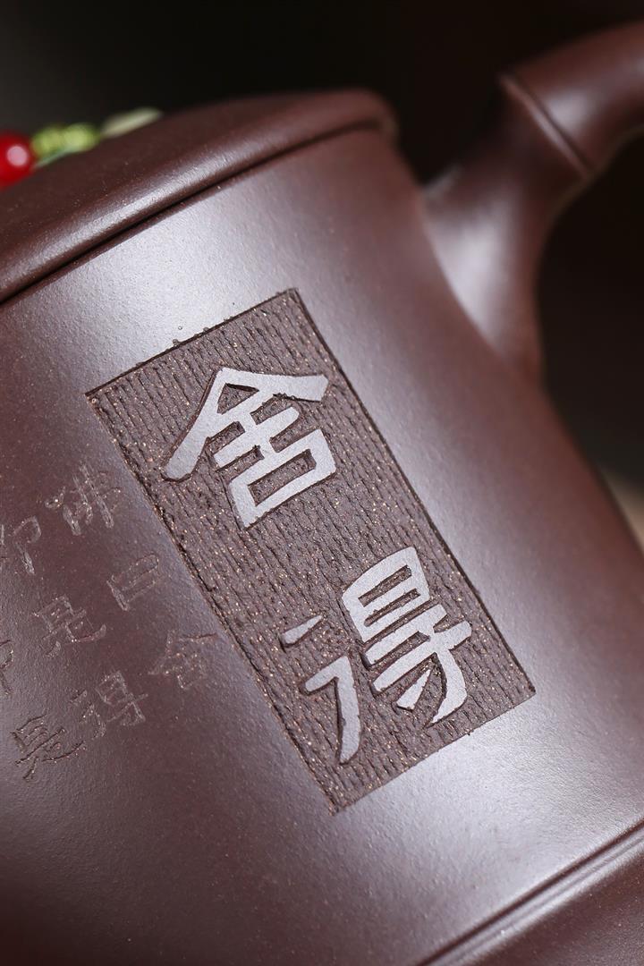 【泥料特點】砂土氣重,似淳實農民,日久使用,漸露鋒芒,養成變化,溫潤莊重。紫砂是壹種雙重氣孔結構的多孔性材質,氣孔微細,密度高。用紫砂壺沏茶,不失原味,且香不渙散,得茶之真香真味。紫砂使用越久,壺身色澤越發光亮照人,氣韻溫雅。紫砂壺長久使用器身會因撫摸擦拭,變得越發溫潤光澤。