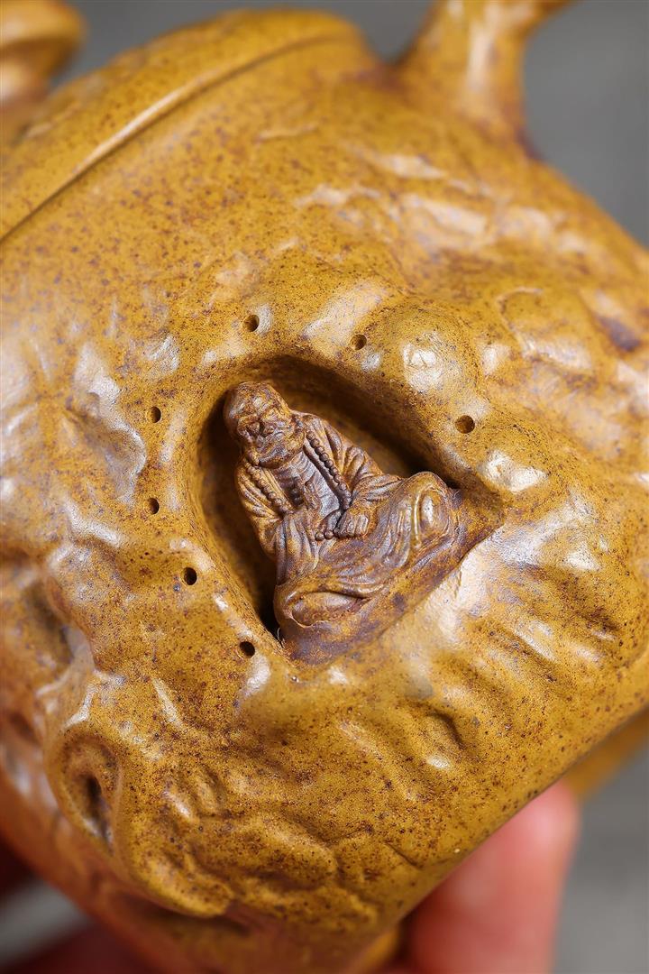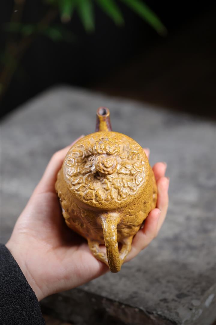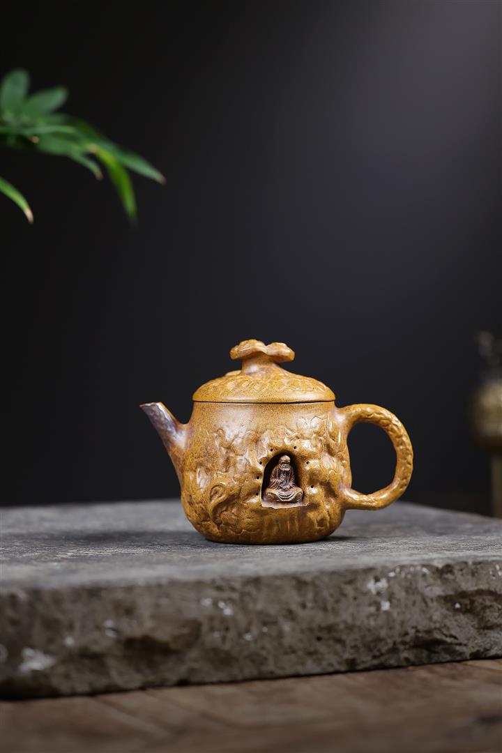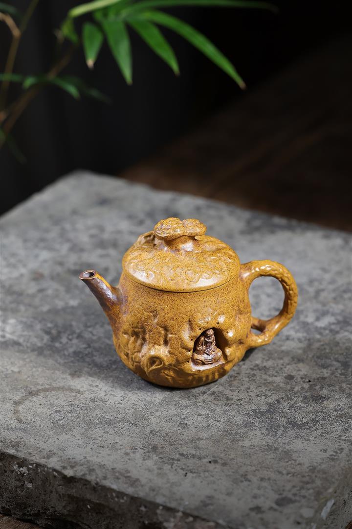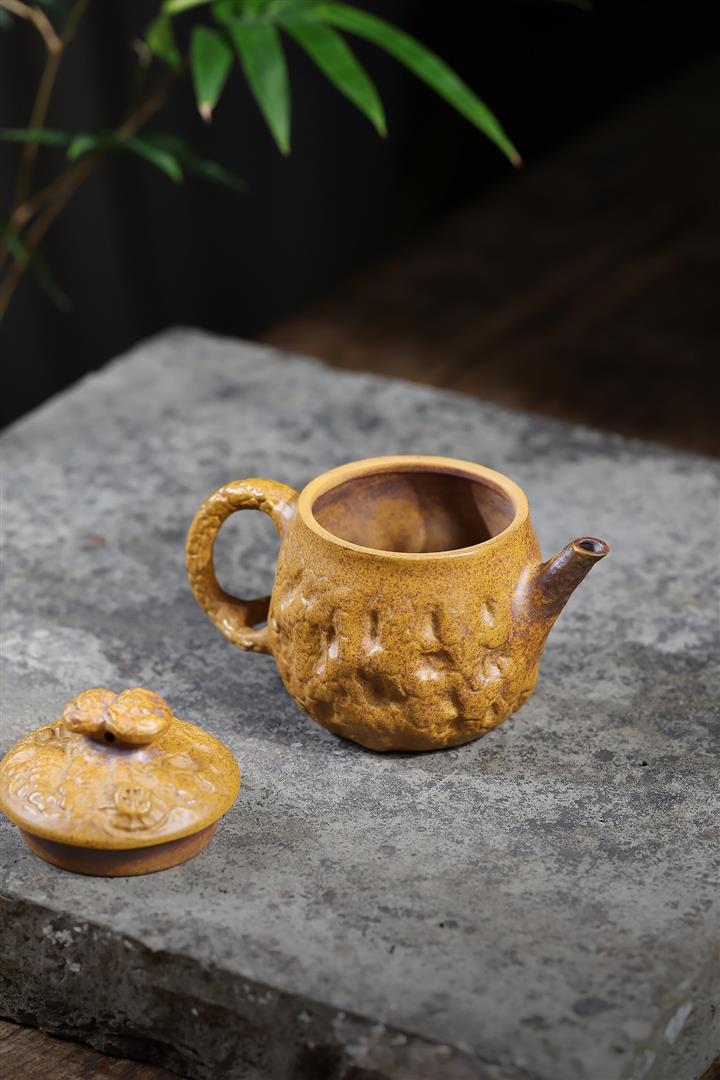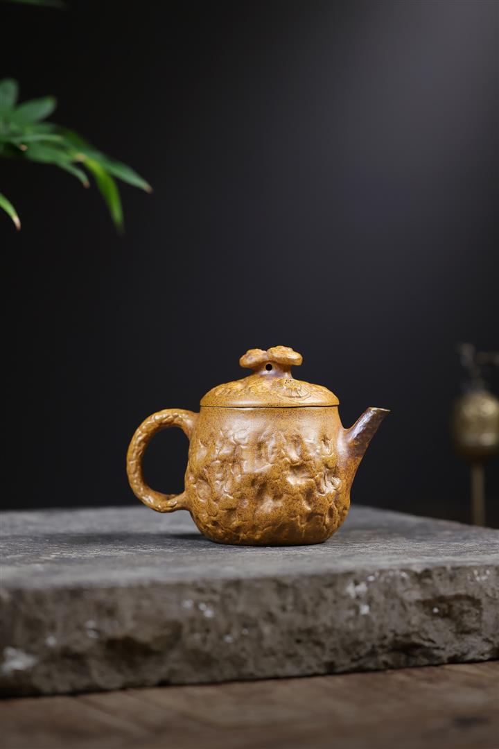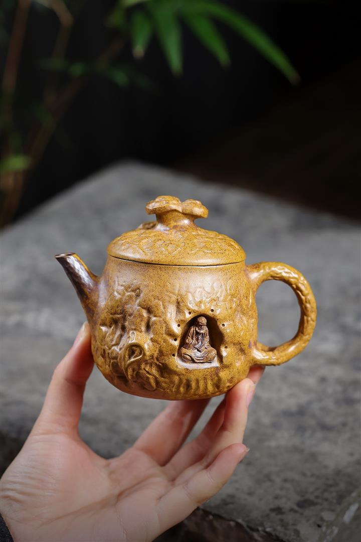 200cc原礦龍骨金砂高溫柴燒靈芝達摩供春泡茶壺POT10091