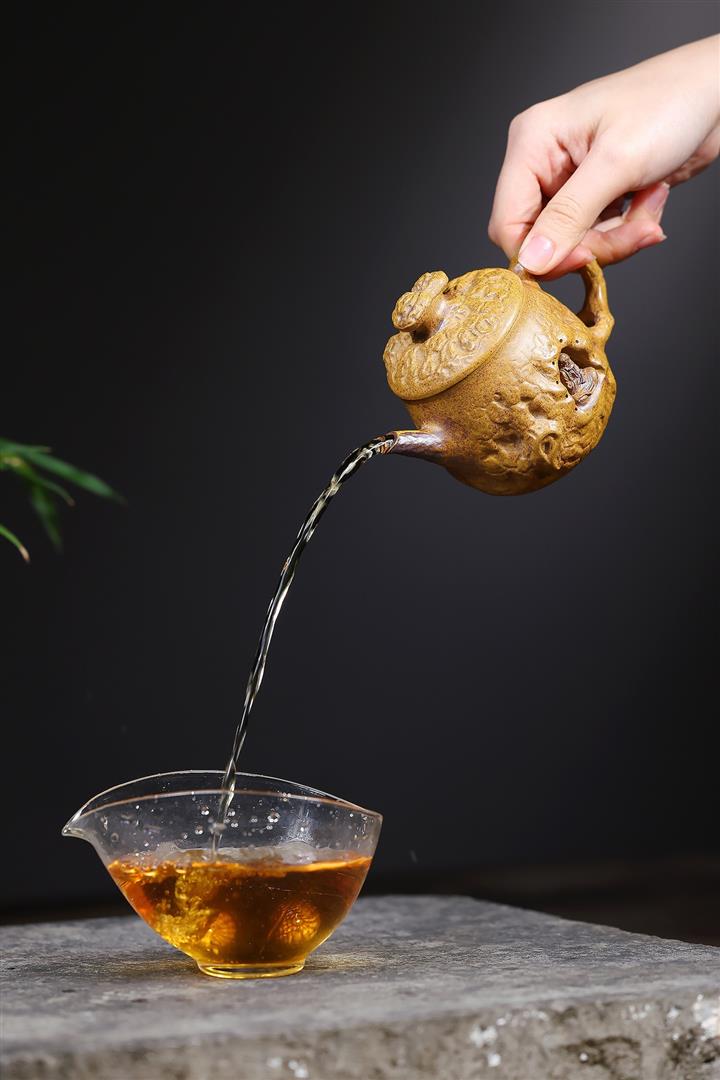 【泥料特點】砂土氣重,似淳實農民,日久使用,漸露鋒芒,養成變化,溫潤莊重。紫砂是壹種雙重氣孔結構的多孔性材質,氣孔微細,密度高。用紫砂壺沏茶,不失原味,且香不渙散,得茶之真香真味。紫砂使用越久,壺身色澤越發光亮照人,氣韻溫雅。紫砂壺長久使用器身會因撫摸擦拭,變得越發溫潤光澤。