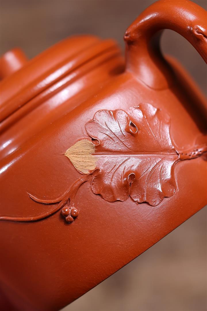 250cc原礦趙莊朱泥貼葉匏尊泡茶壺POT10093