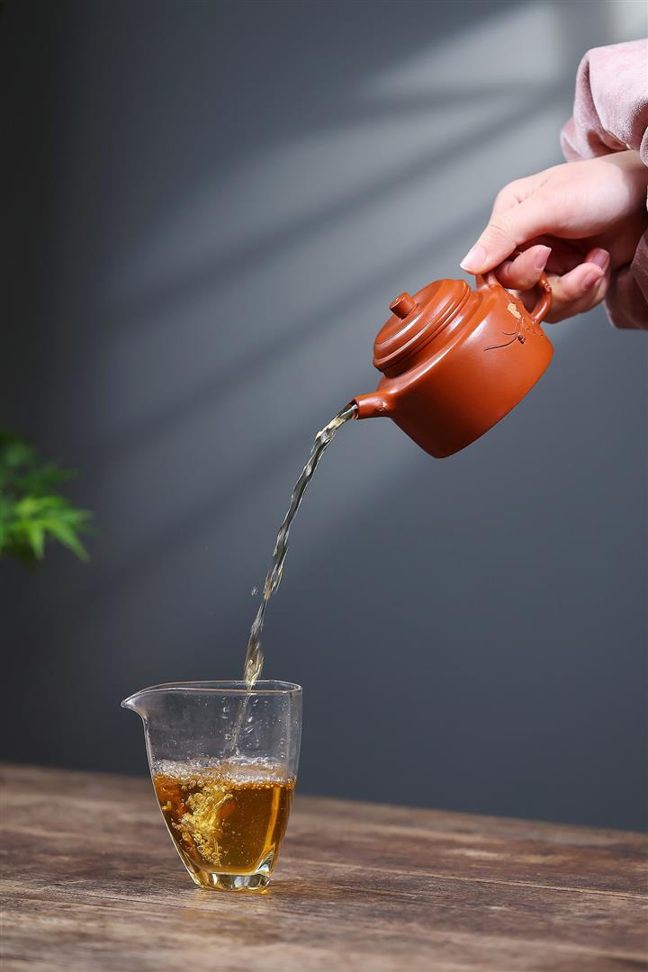 【泥料特點】砂土氣重,似淳實農民,日久使用,漸露鋒芒,養成變化,溫潤莊重。紫砂是壹種雙重氣孔結構的多孔性材質,氣孔微細,密度高。用紫砂壺沏茶,不失原味,且香不渙散,得茶之真香真味。紫砂使用越久,壺身色澤越發光亮照人,氣韻溫雅。紫砂壺長久使用器身會因撫摸擦拭,變得越發溫潤光澤。