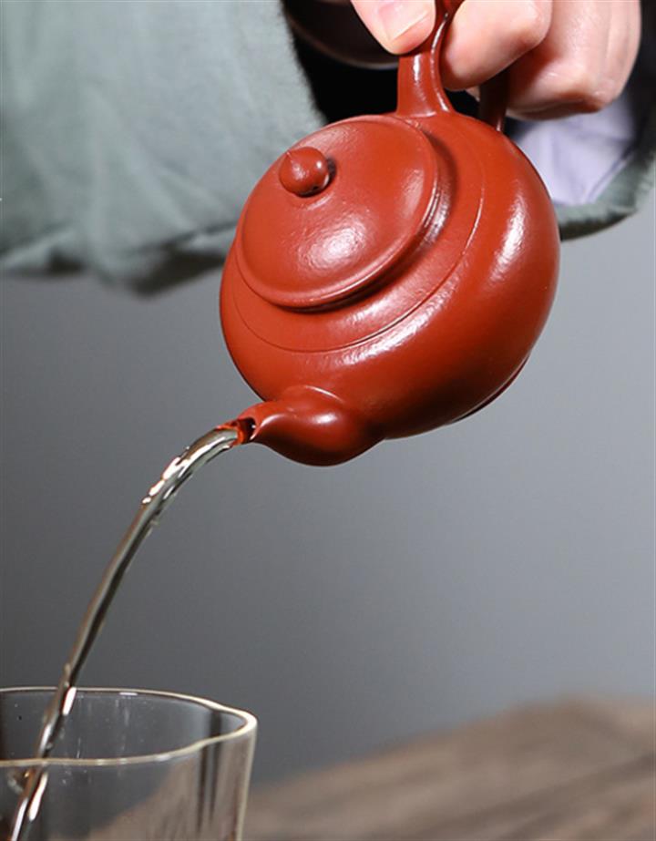 【泥料特點】砂土氣重,似淳實農民,日久使用,漸露鋒芒,養成變化,溫潤莊重。紫砂是壹種雙重氣孔結構的多孔性材質,氣孔微細,密度高。用紫砂壺沏茶,不失原味,且香不渙散,得茶之真香真味。紫砂使用越久,壺身色澤越發光亮照人,氣韻溫雅。紫砂壺長久使用器身會因撫摸擦拭,變得越發溫潤光澤。