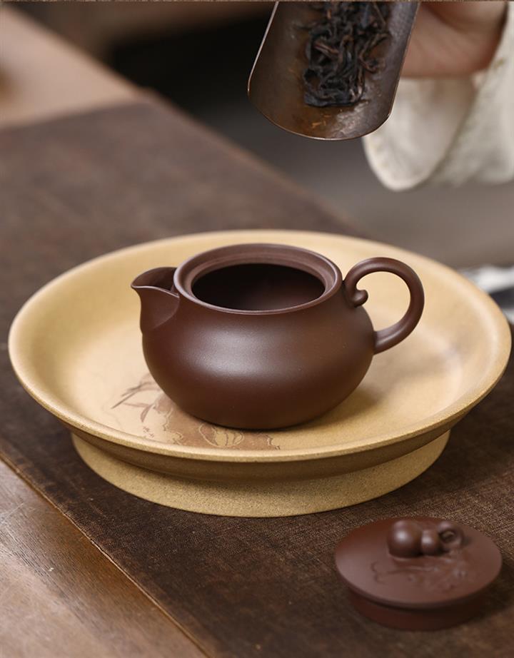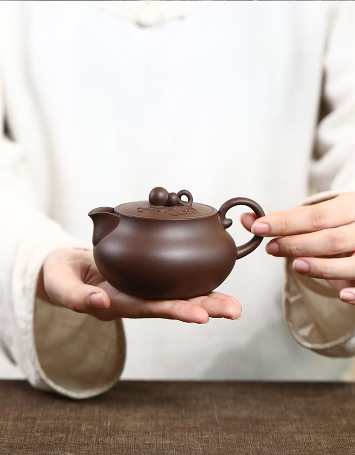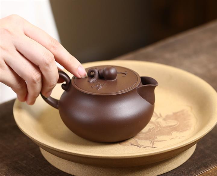 【泥料特點】砂土氣重,似淳實農民,日久使用,漸露鋒芒,養成變化,溫潤莊重。紫砂是壹種雙重氣孔結構的多孔性材質,氣孔微細,密度高。用紫砂壺沏茶,不失原味,且香不渙散,得茶之真香真味。紫砂使用越久,壺身色澤越發光亮照人,氣韻溫雅。紫砂壺長久使用器身會因撫摸擦拭,變得越發溫潤光澤。
