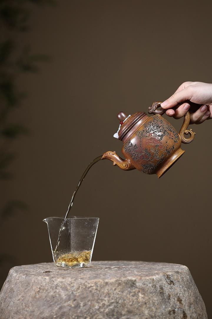 【作品介紹】此款壺形線條流暢,壺把,壺嘴,壺身壹氣呵成栩栩如生,是收藏把玩的好壺,泥料色澤古樸典雅,日久使用,漸露鋒芒,養成變化快,溫潤莊重,用其泡茶,使用的年代久,壺身就溫潤,泡出來的茶湯也就醇郁芳馨。