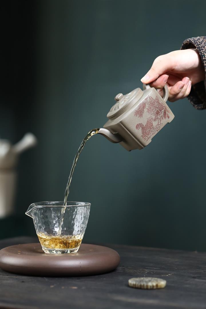 【泥料特點】砂土氣重,似淳實農民,日久使用,漸露鋒芒,養成變化,溫潤莊重。紫砂是壹種雙重氣孔結構的多孔性材質,氣孔微細,密度高。用紫砂壺沏茶,不失原味,且香不渙散,得茶之真香真味。紫砂使用越久,壺身色澤越發光亮照人,氣韻溫雅。紫砂壺長久使用器身會因撫摸擦拭,變得越發溫潤光澤。