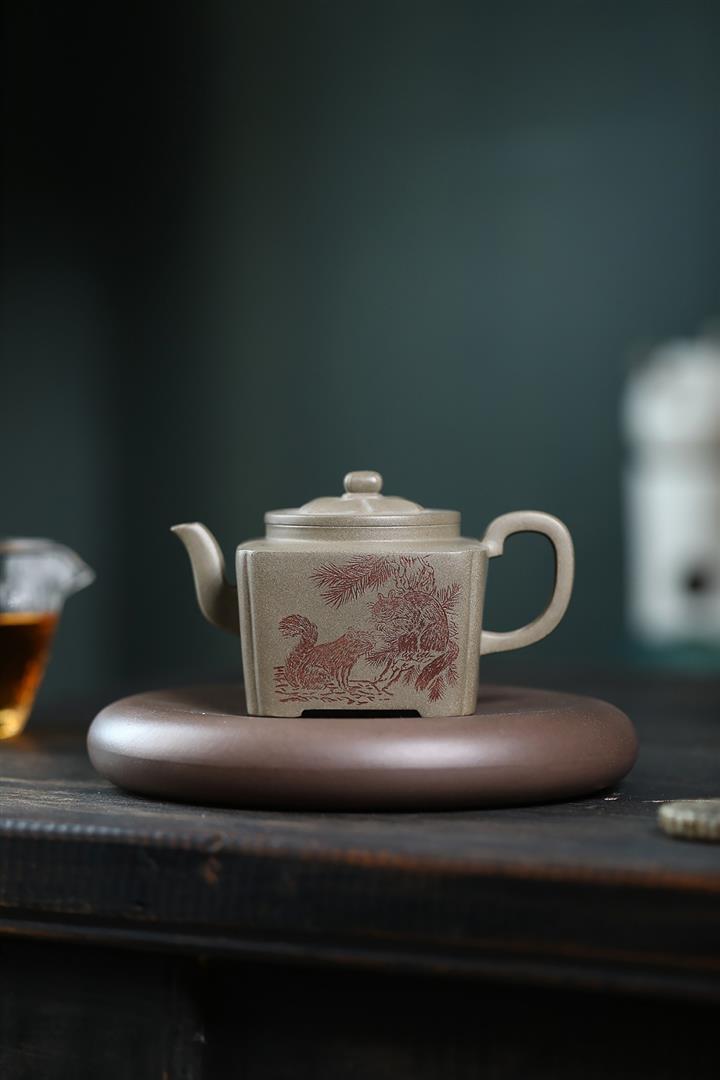 【作品介紹】此款壺形線條流暢,壺把,壺嘴,壺身壹氣呵成栩栩如生,是收藏把玩的好壺,泥料色澤古樸典雅,日久使用,漸露鋒芒,養成變化快,溫潤莊重,用其泡茶,使用的年代久,壺身就溫潤,泡出來的茶湯也就醇郁芳馨。