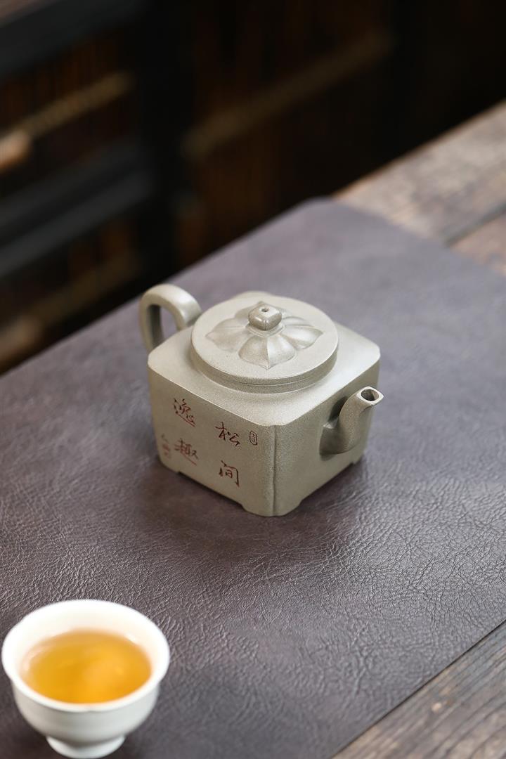 300cc原礦青灰段泥松風方骨泡茶壺POT10110