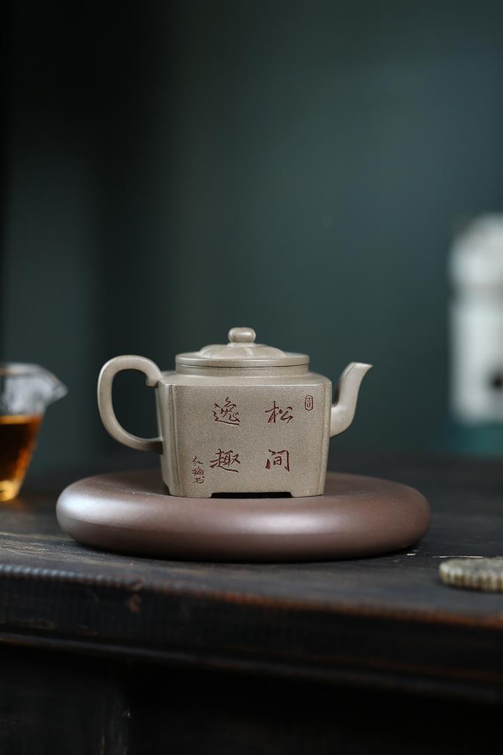 400cc原礦龍血砂八方滿刻竹段泡茶壺POT10113