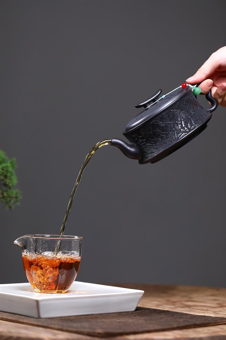 330cc原礦玄鐵石黃錦繡漢瓦泡茶壺POT10121