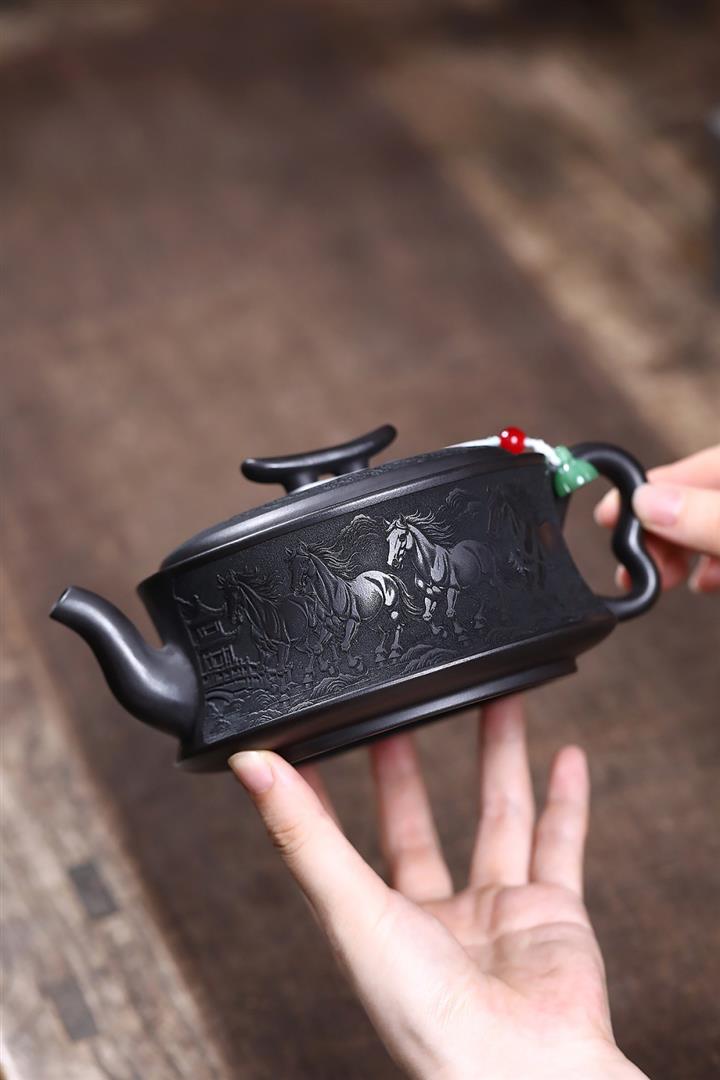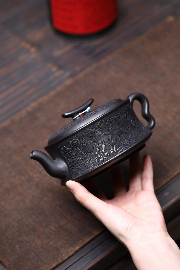 480cc原礦石黃泥萬馬奔騰泡茶壺POT10112