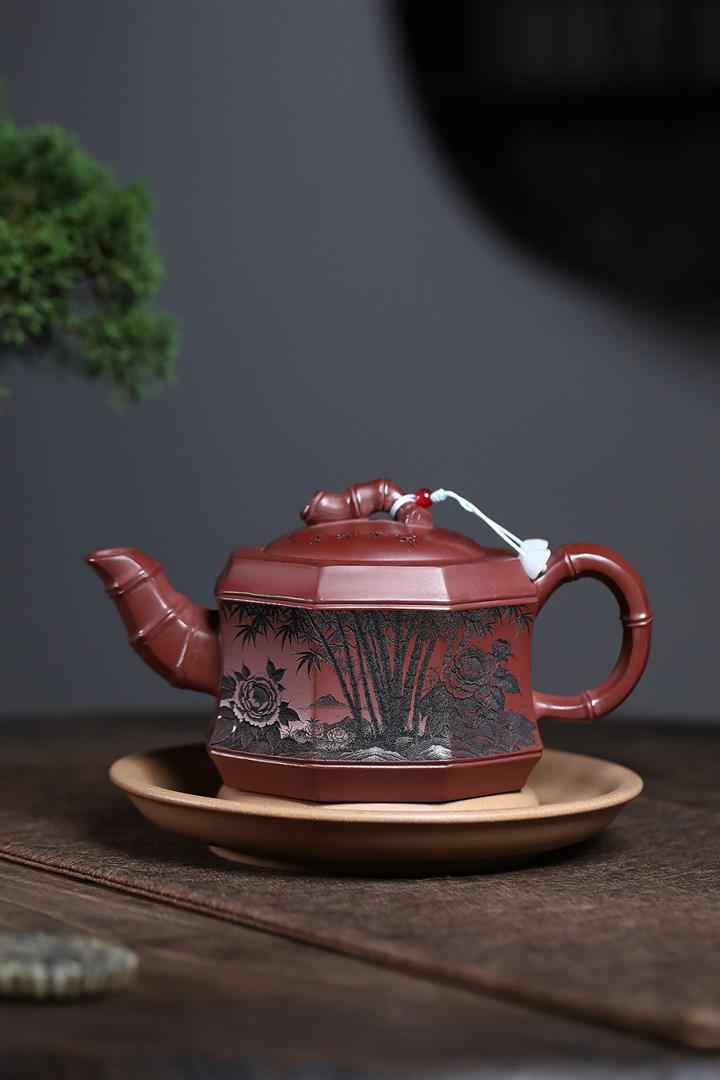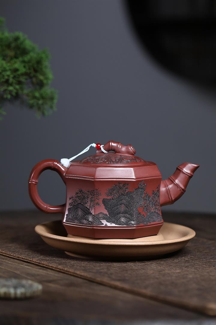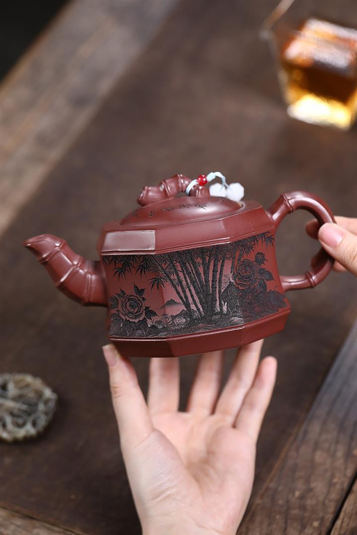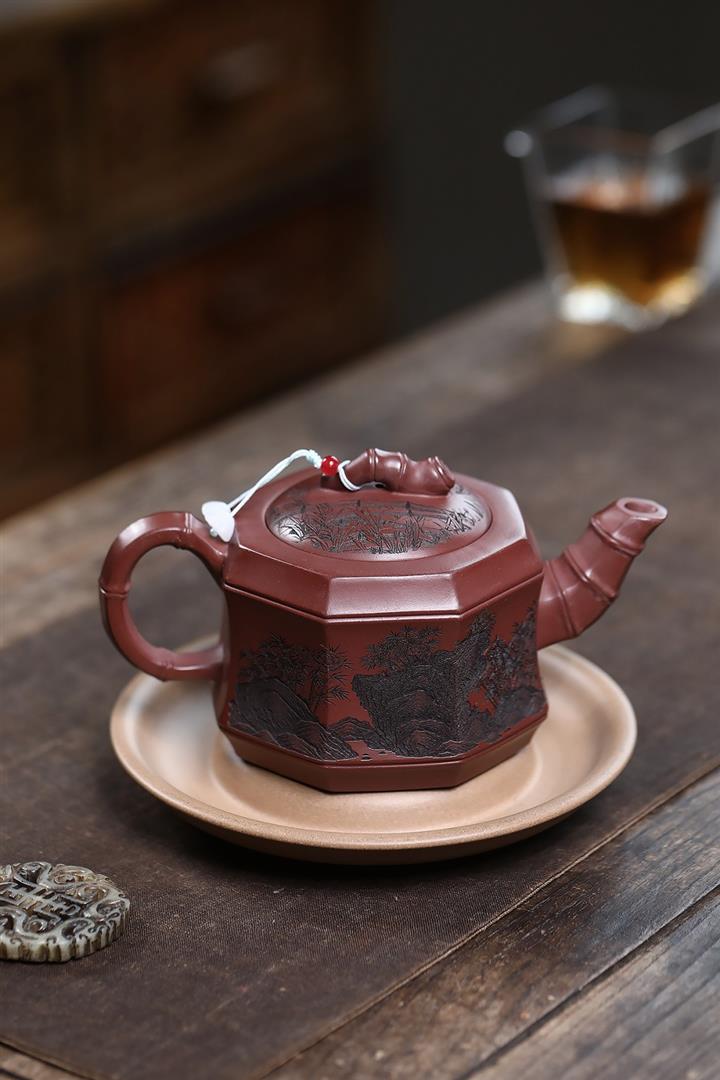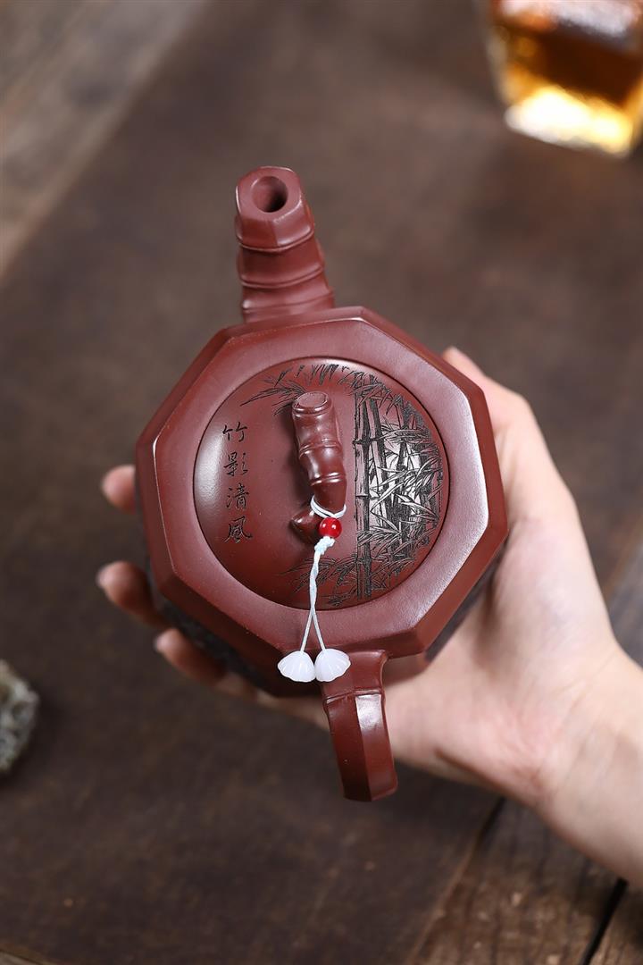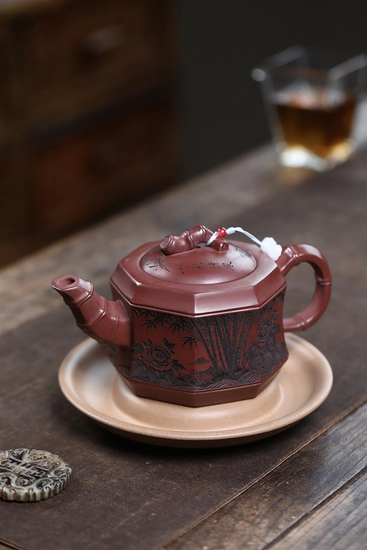 400cc原礦龍血砂八方滿刻竹段泡茶壺POT10113