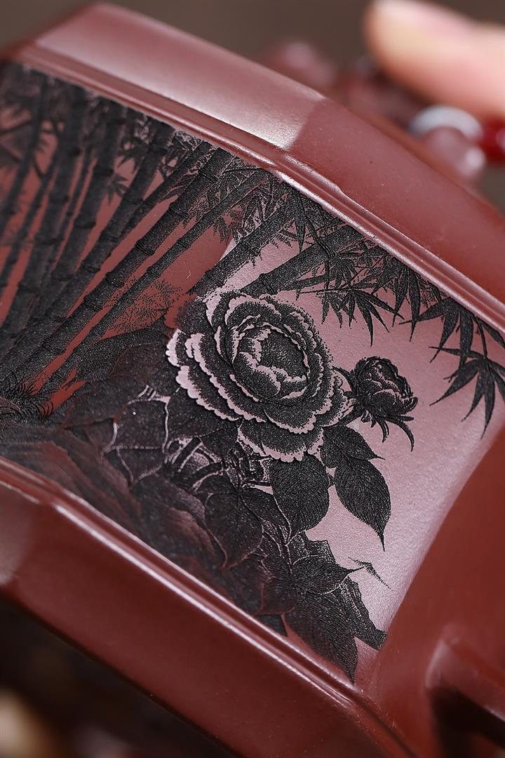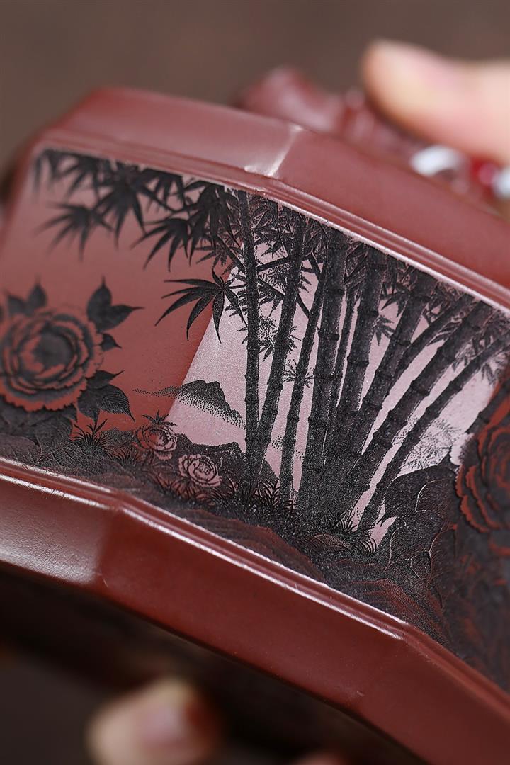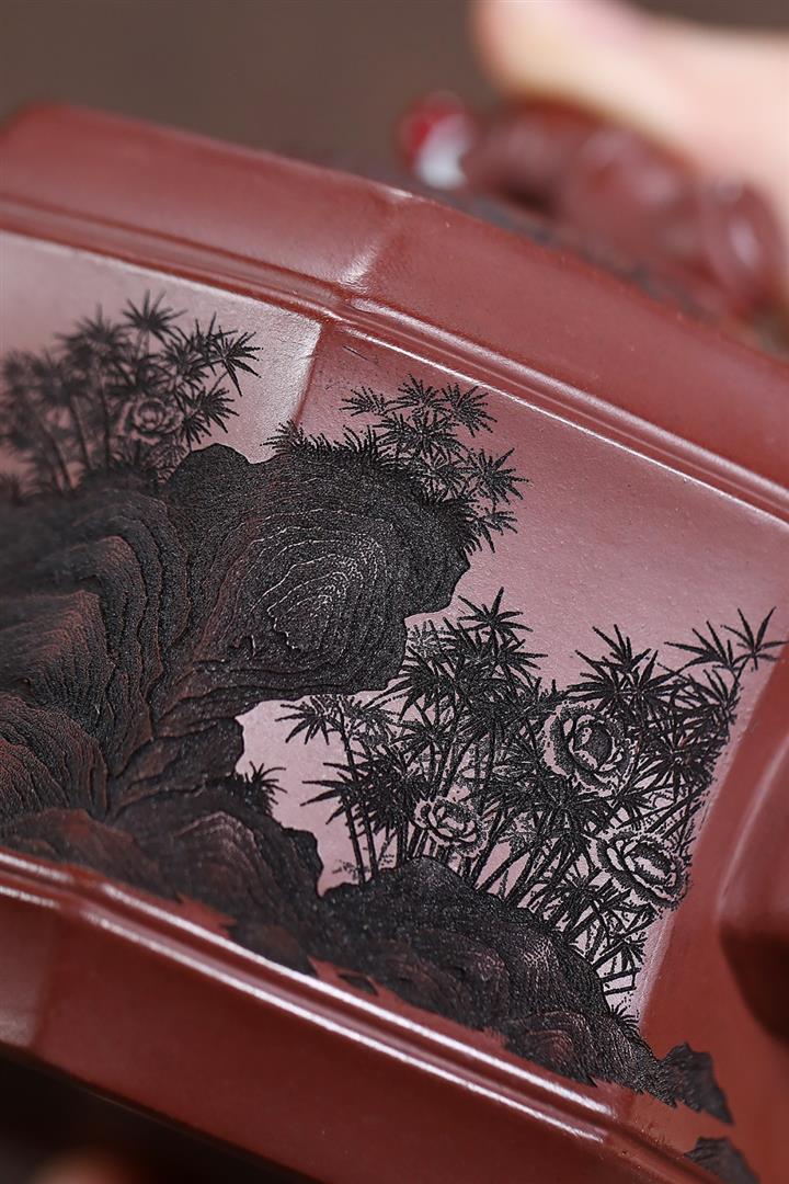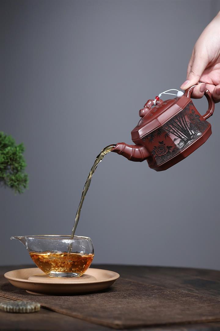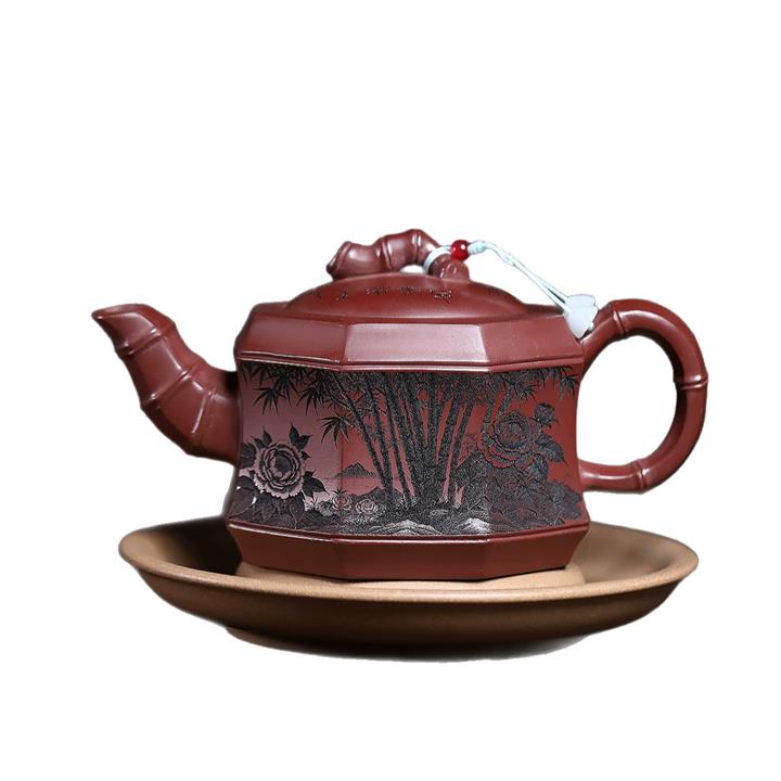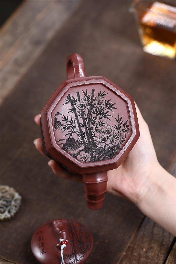 400cc原礦龍血砂八方滿刻竹段泡茶壺POT10113