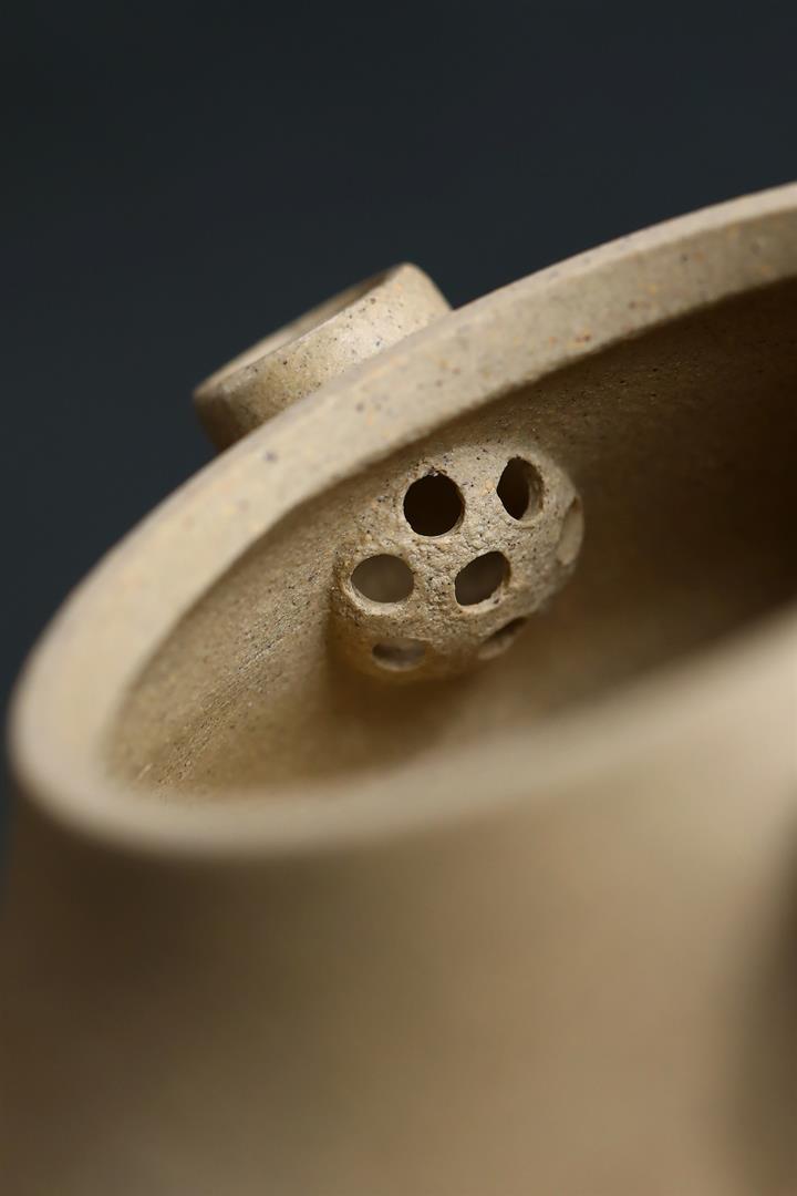 【泥料特點】砂土氣重,似淳實農民,日久使用,漸露鋒芒,養成變化,溫潤莊重。紫砂是壹種雙重氣孔結構的多孔性材質,氣孔微細,密度高。用紫砂壺沏茶,不失原味,且香不渙散,得茶之真香真味。紫砂使用越久,壺身色澤越發光亮照人,氣韻溫雅。紫砂壺長久使用器身會因撫摸擦拭,變得越發溫潤光澤。