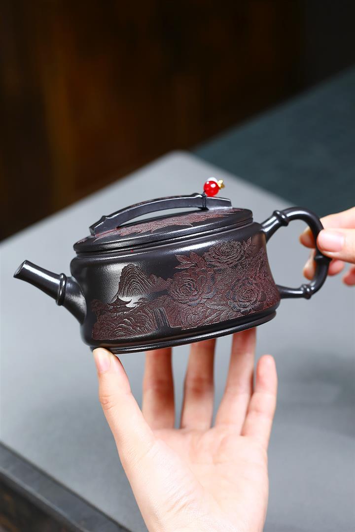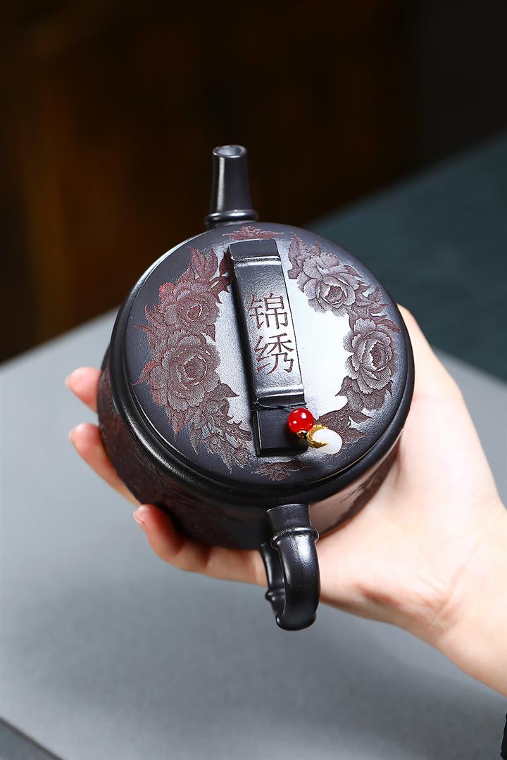 330cc原礦玄鐵石黃錦繡漢瓦泡茶壺POT10121