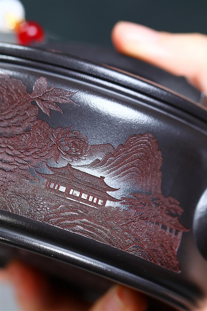 100cc原礦朱泥雙刀刻繪書法德鐘泡茶壺POT10129
