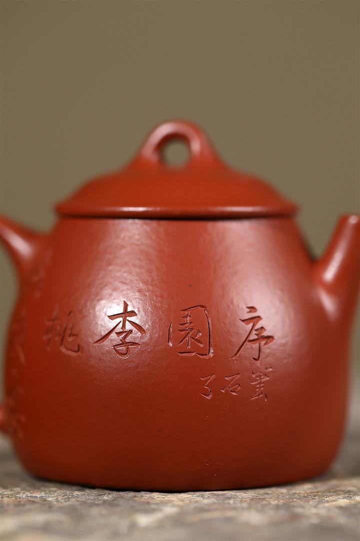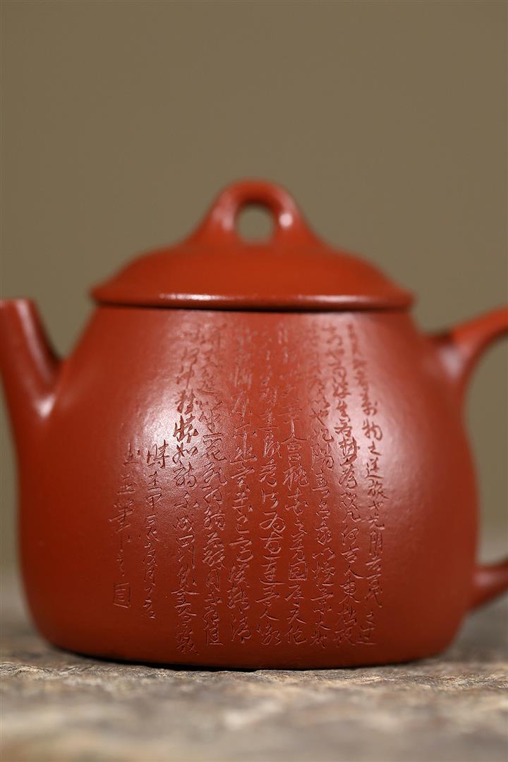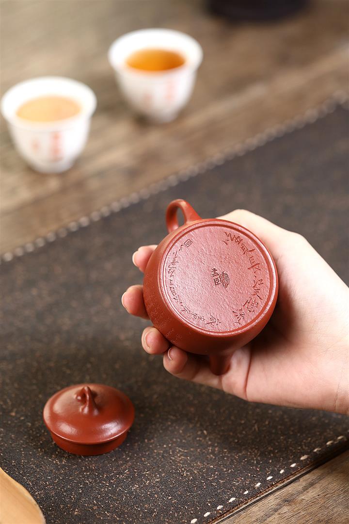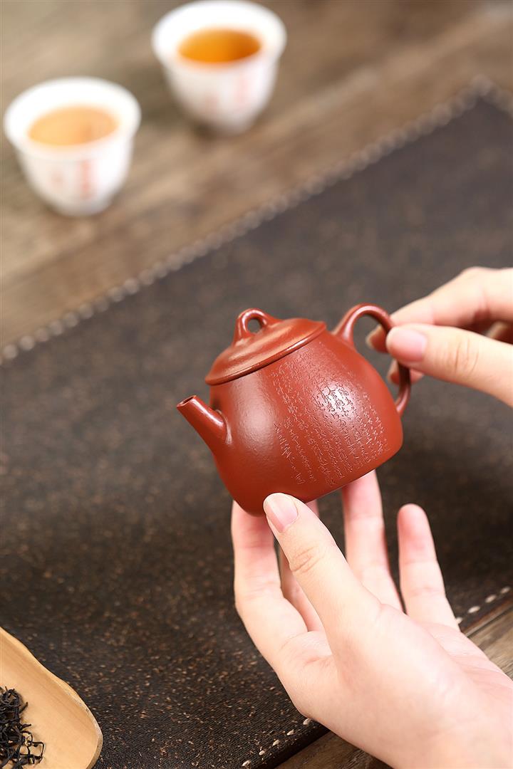 100cc原礦朱泥雙刀刻繪書法德鐘泡茶壺POT10129