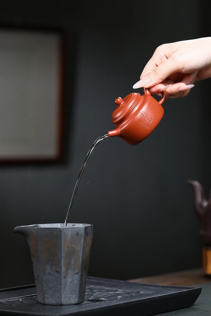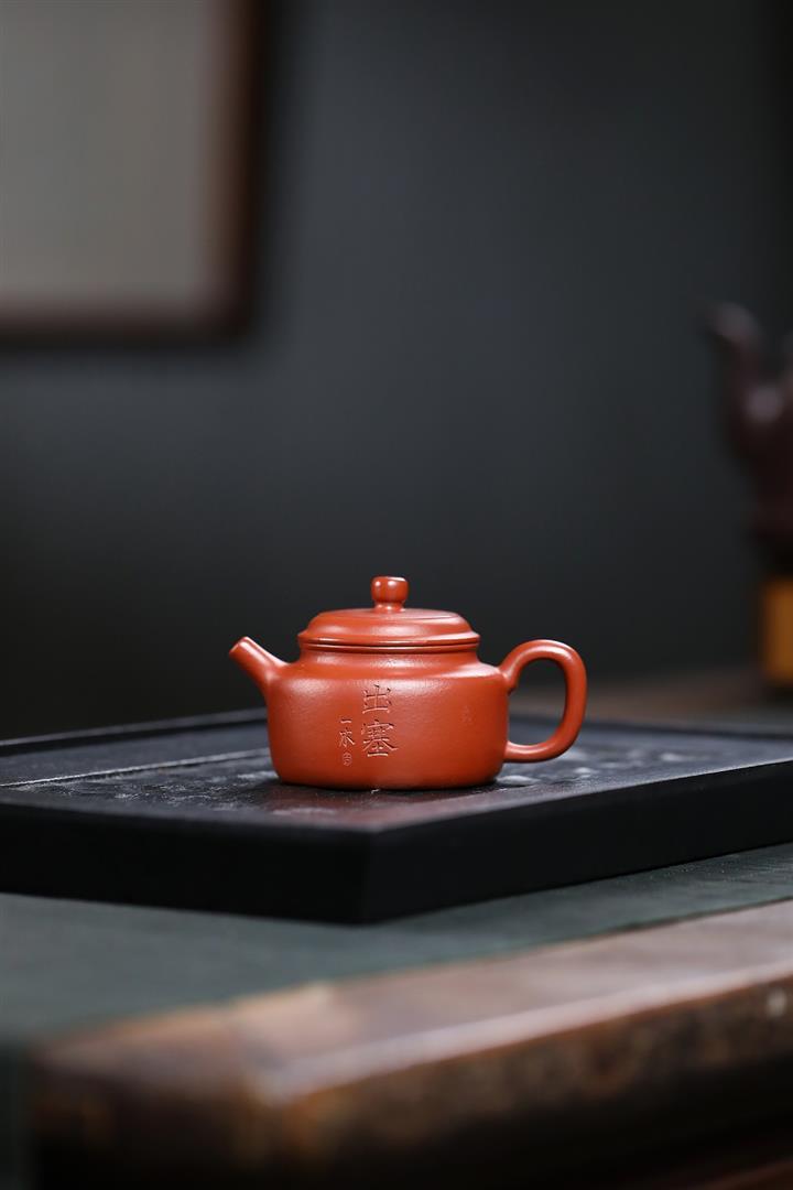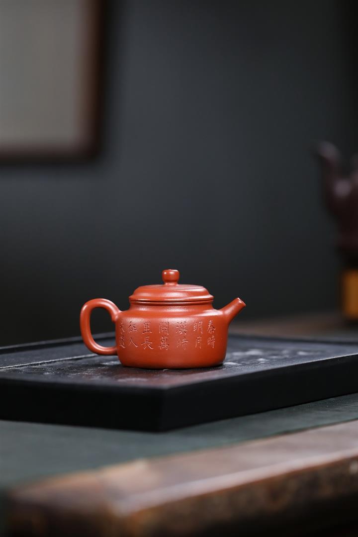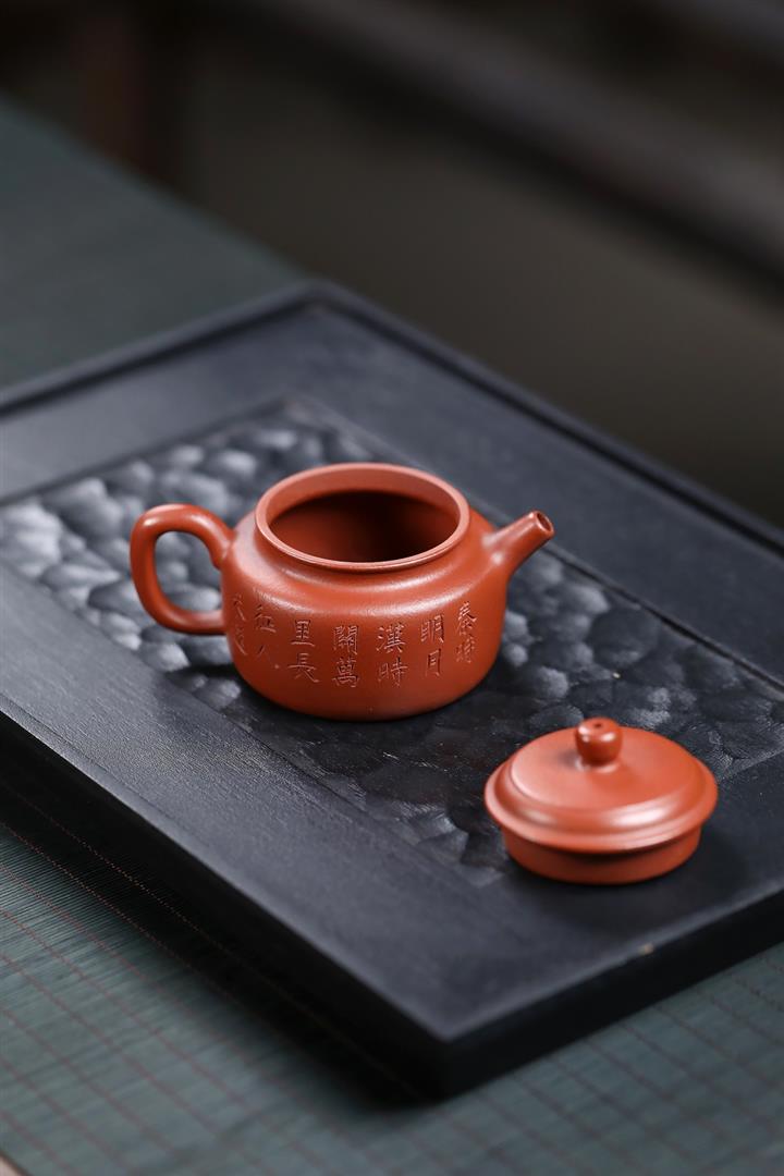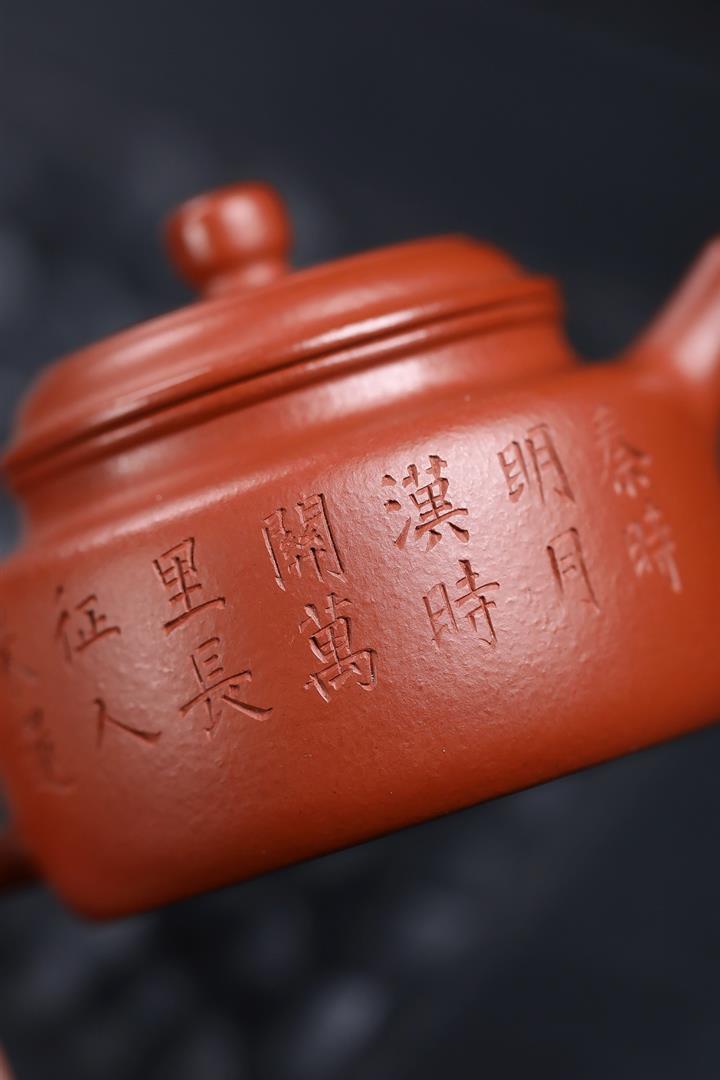 100cc原礦朱泥雙刀刻繪書法德鐘泡茶壺POT10129