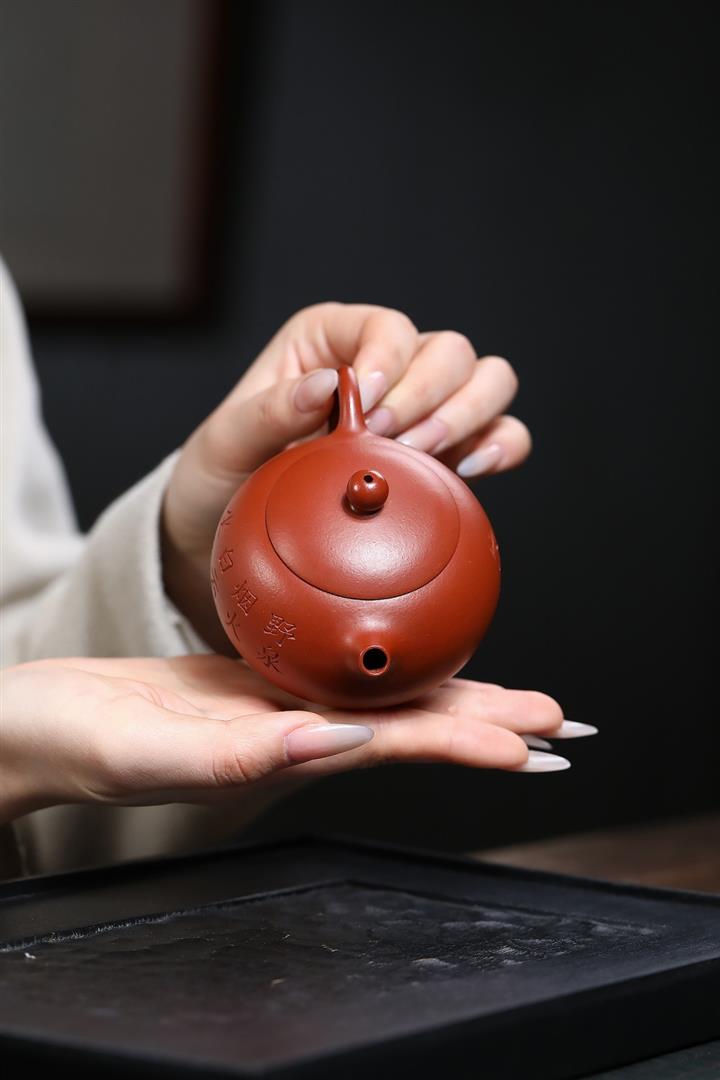 220cc原礦朱泥書法掇球泡茶壺POT10136