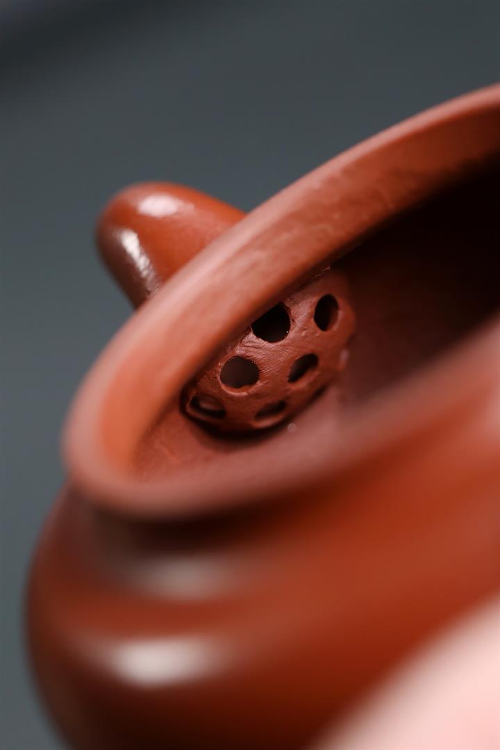【泥料特點】砂土氣重,似淳實農民,日久使用,漸露鋒芒,養成變化,溫潤莊重。紫砂是壹種雙重氣孔結構的多孔性材質,氣孔微細,密度高。用紫砂壺沏茶,不失原味,且香不渙散,得茶之真香真味。紫砂使用越久,壺身色澤越發光亮照人,氣韻溫雅。紫砂壺長久使用器身會因撫摸擦拭,變得越發溫潤光澤。
