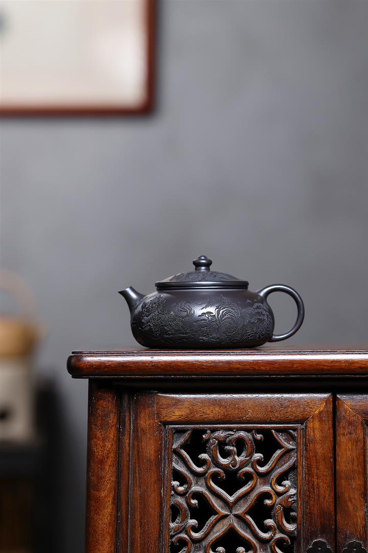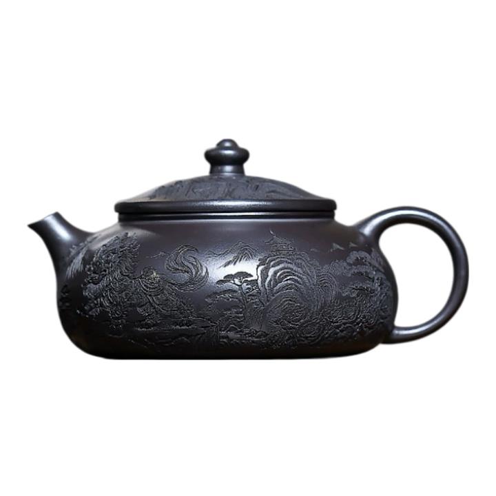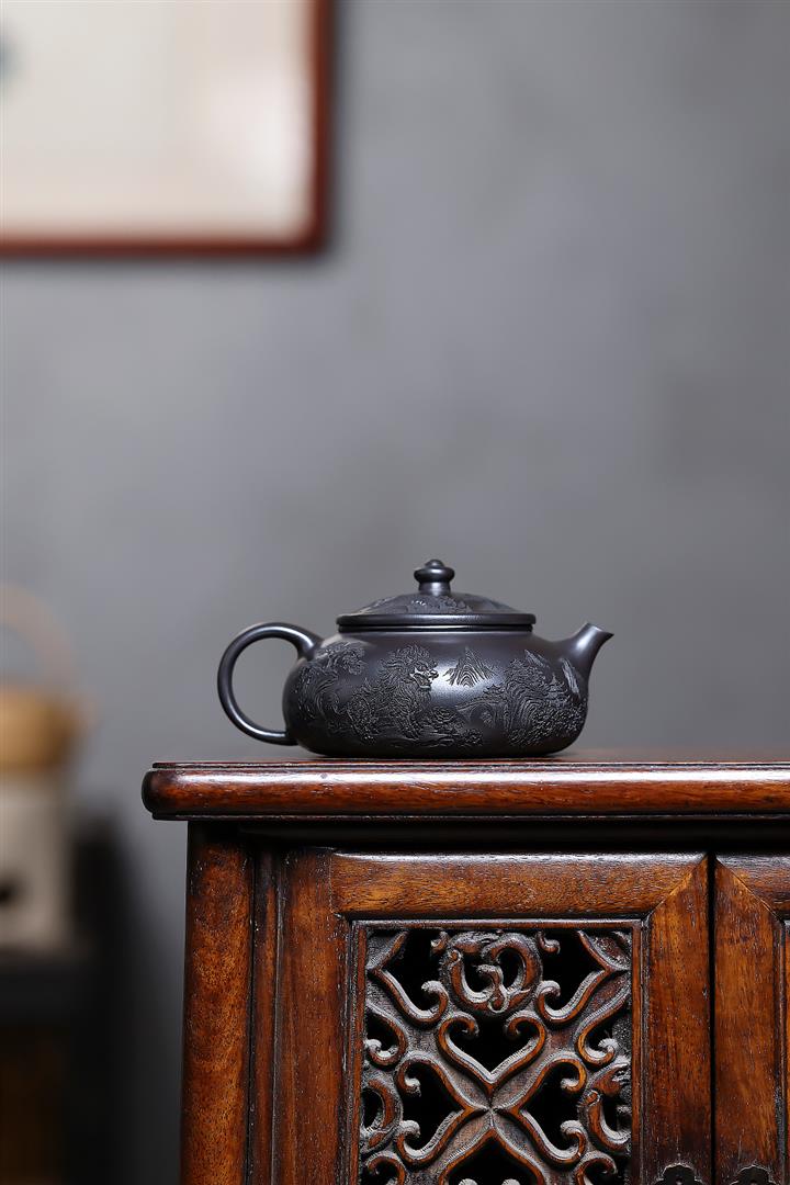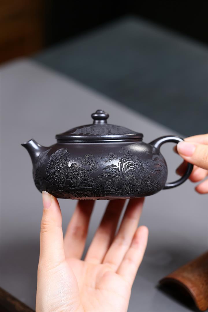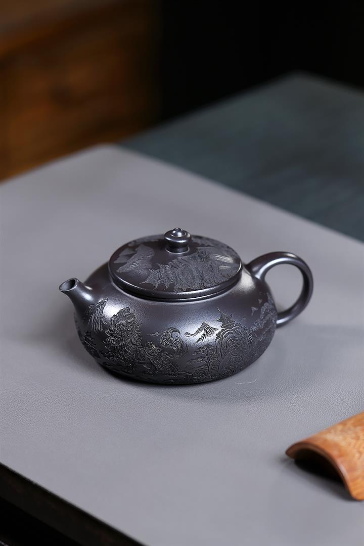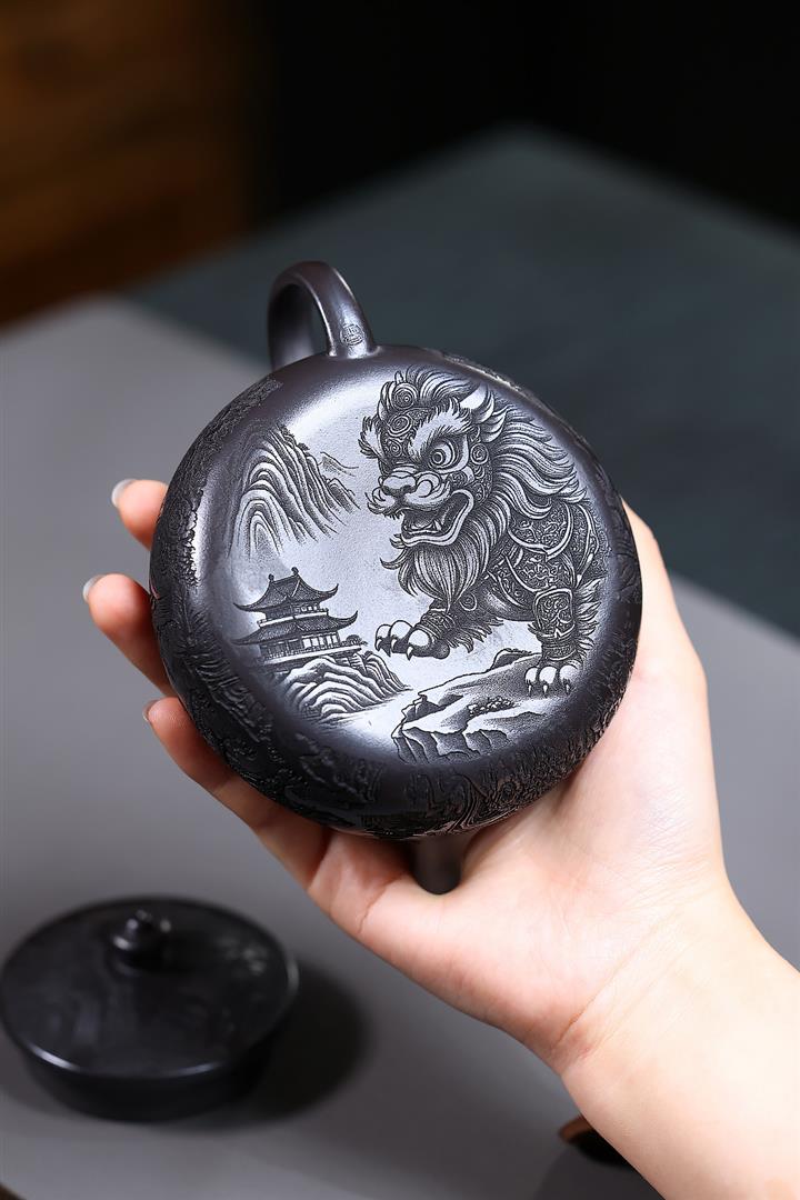 250cc原礦玄鐵石黃獅舞寒江泡茶壺POT10138