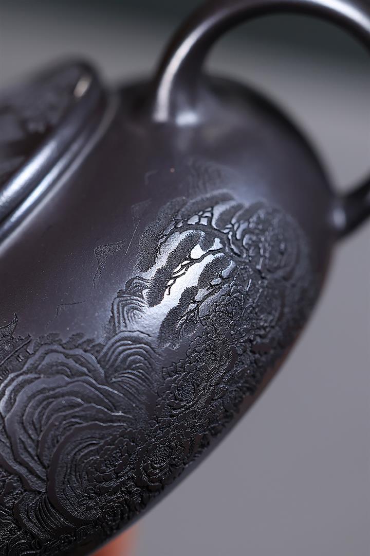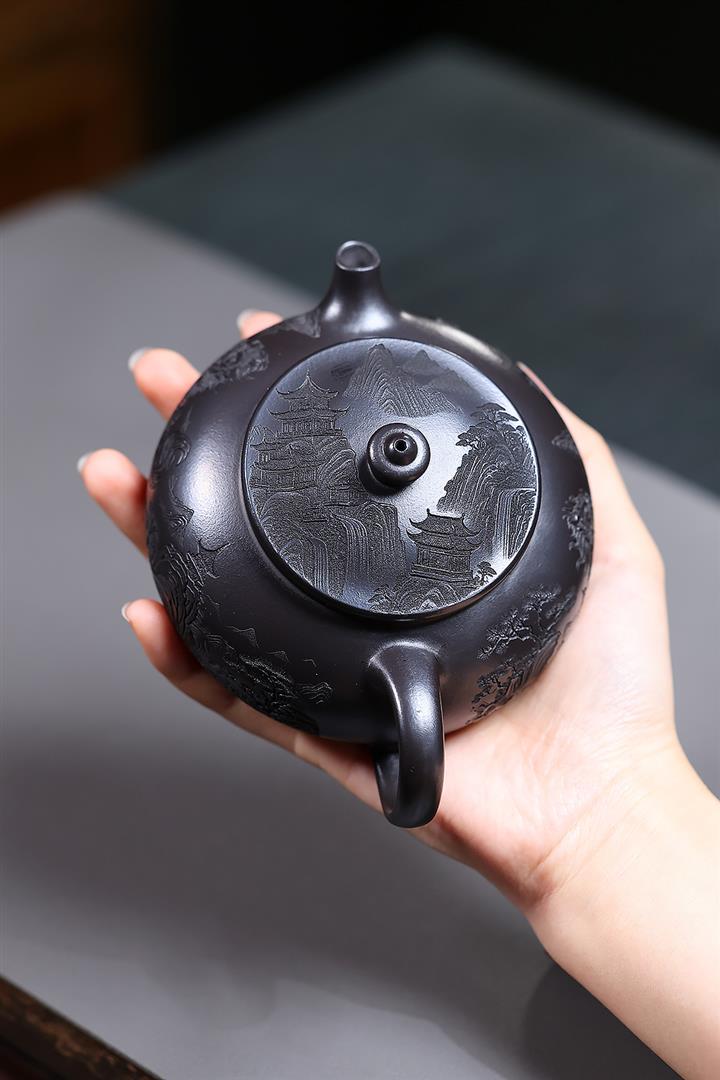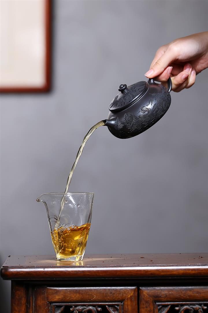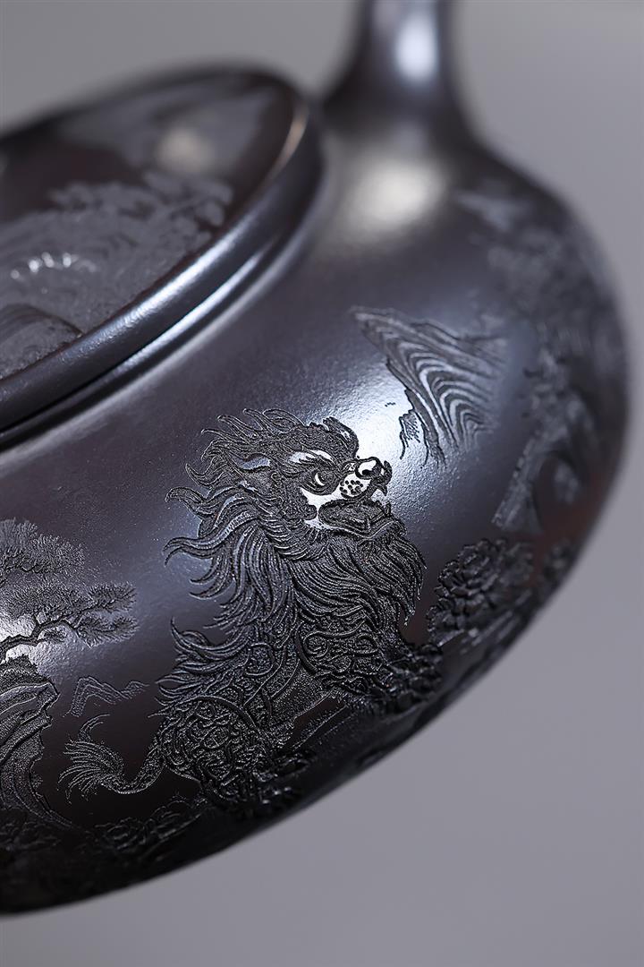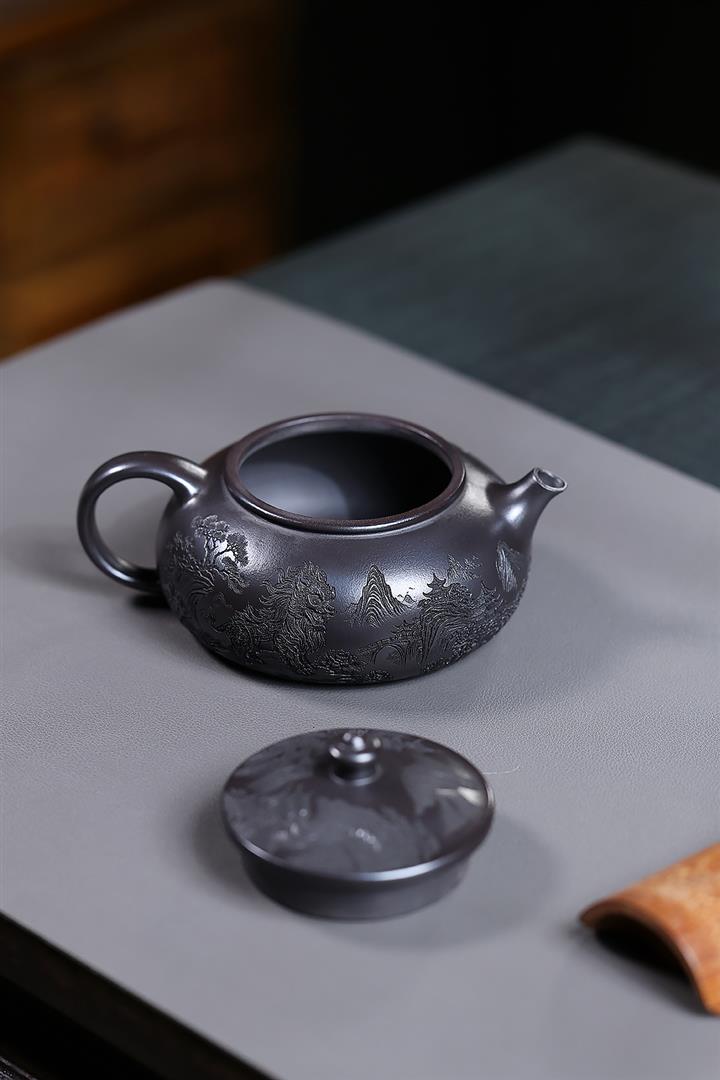 250cc原礦玄鐵石黃獅舞寒江泡茶壺POT10138