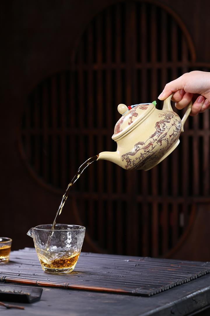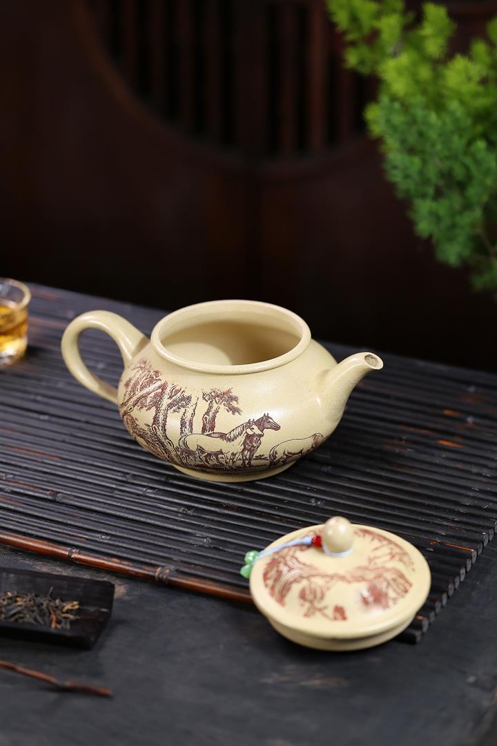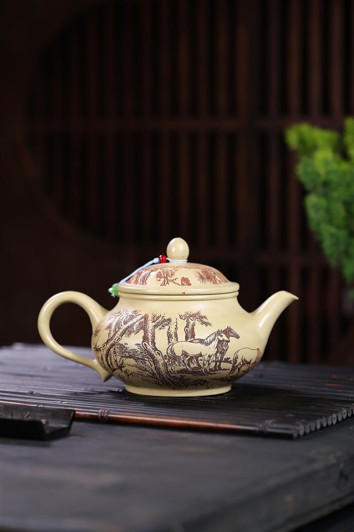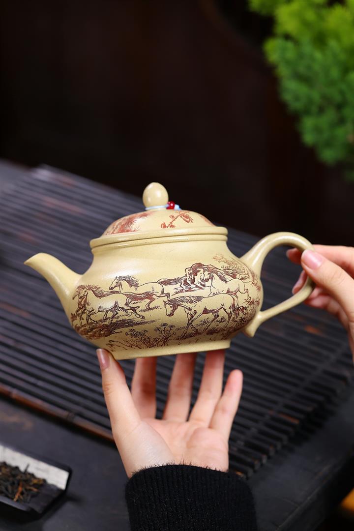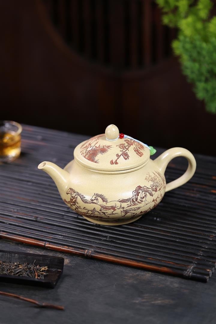 520cc原礦石紅泥八駿曲王泡茶壺POT10146