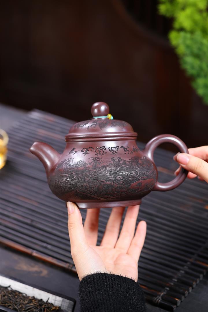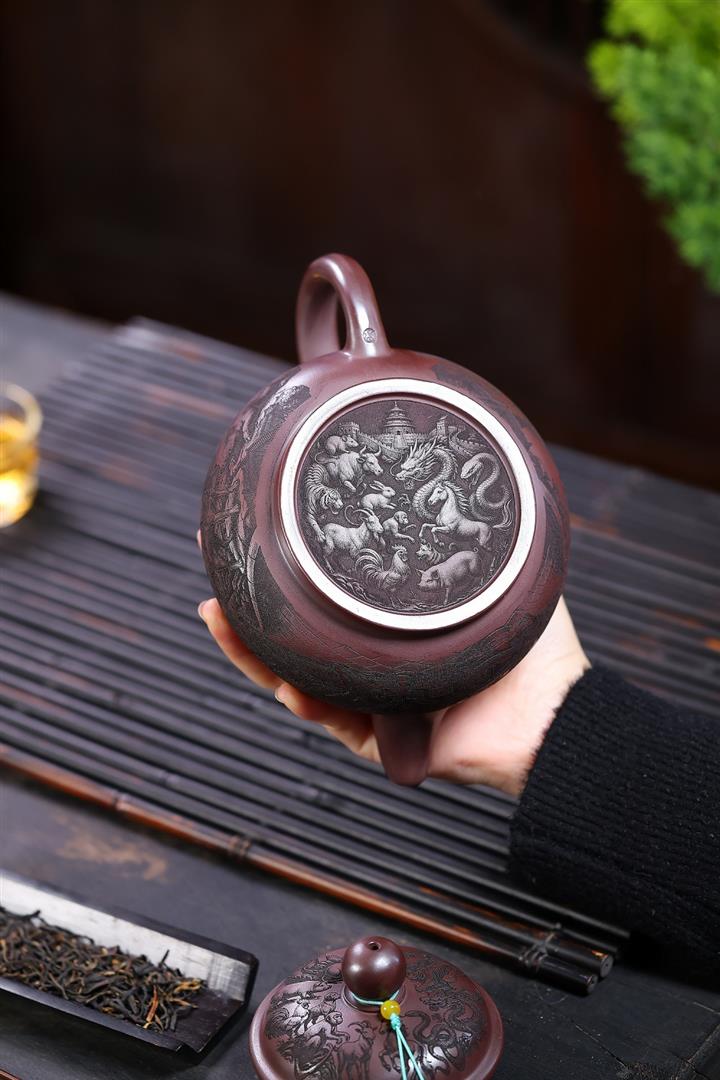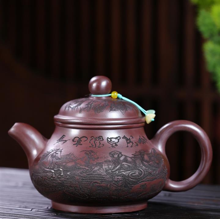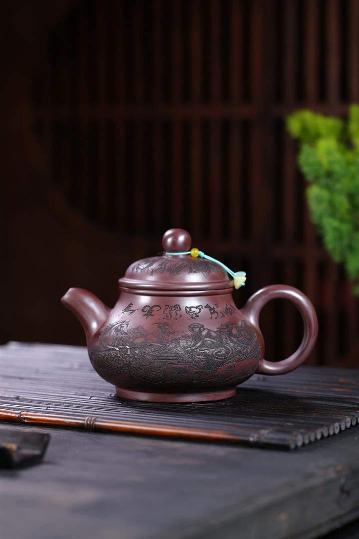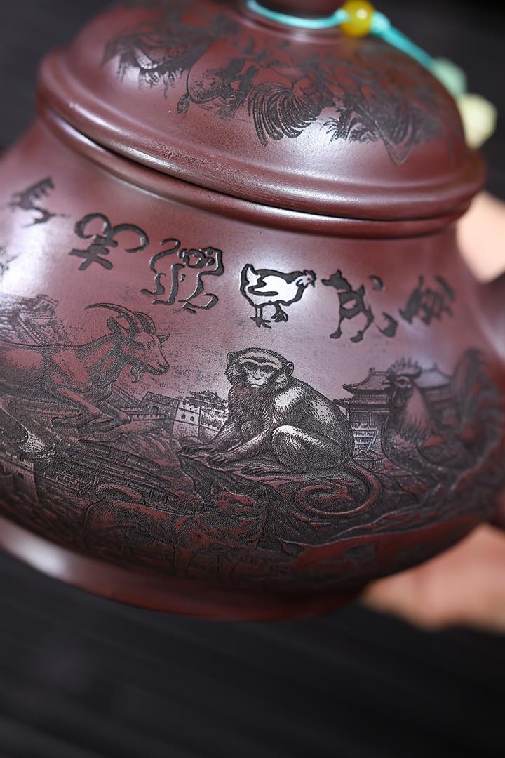 580cc原礦石紅泥十二生肖潘壺泡茶壺POT10148