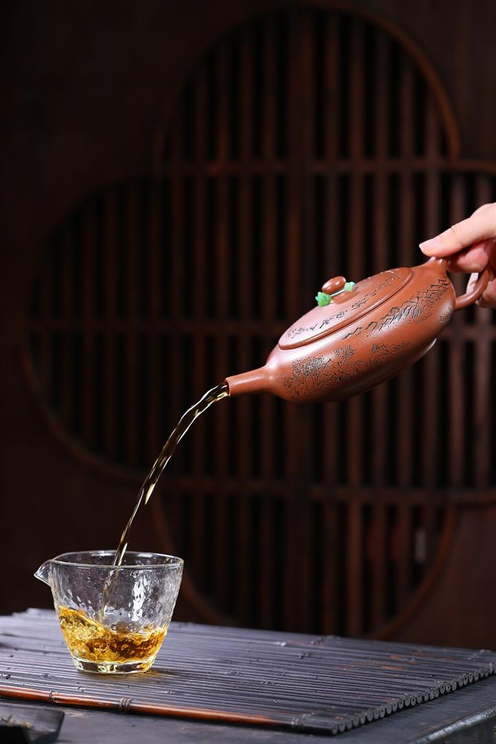 【作品介紹】此款壺形線條流暢,壺把,壺嘴,壺身壹氣呵成栩栩如生,是收藏把玩的好壺,泥料色澤古樸典雅,日久使用,漸露鋒芒,養成變化快,溫潤莊重,用其泡茶,使用的年代久,壺身就溫潤,泡出來的茶湯也就醇郁芳馨。