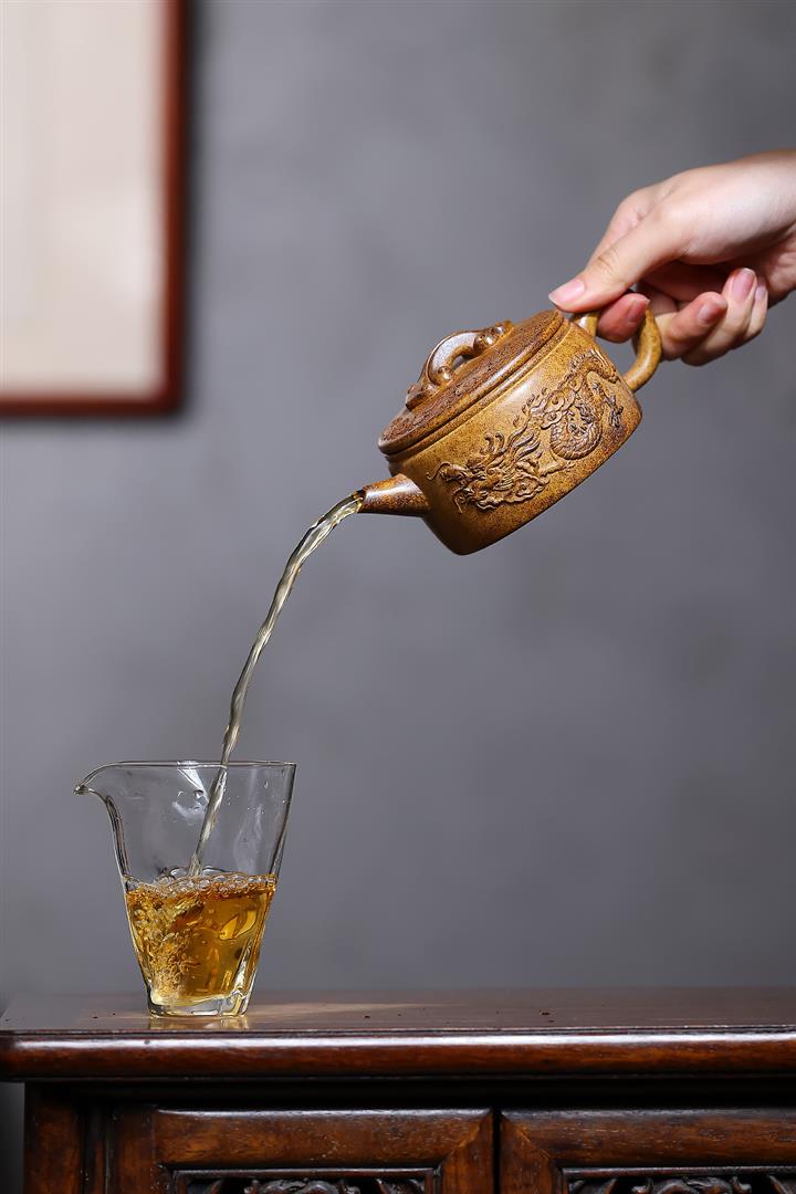 【泥料特點】砂土氣重,似淳實農民,日久使用,漸露鋒芒,養成變化,溫潤莊重。紫砂是壹種雙重氣孔結構的多孔性材質,氣孔微細,密度高。用紫砂壺沏茶,不失原味,且香不渙散,得茶之真香真味。紫砂使用越久,壺身色澤越發光亮照人,氣韻溫雅。紫砂壺長久使用器身會因撫摸擦拭,變得越發溫潤光澤。