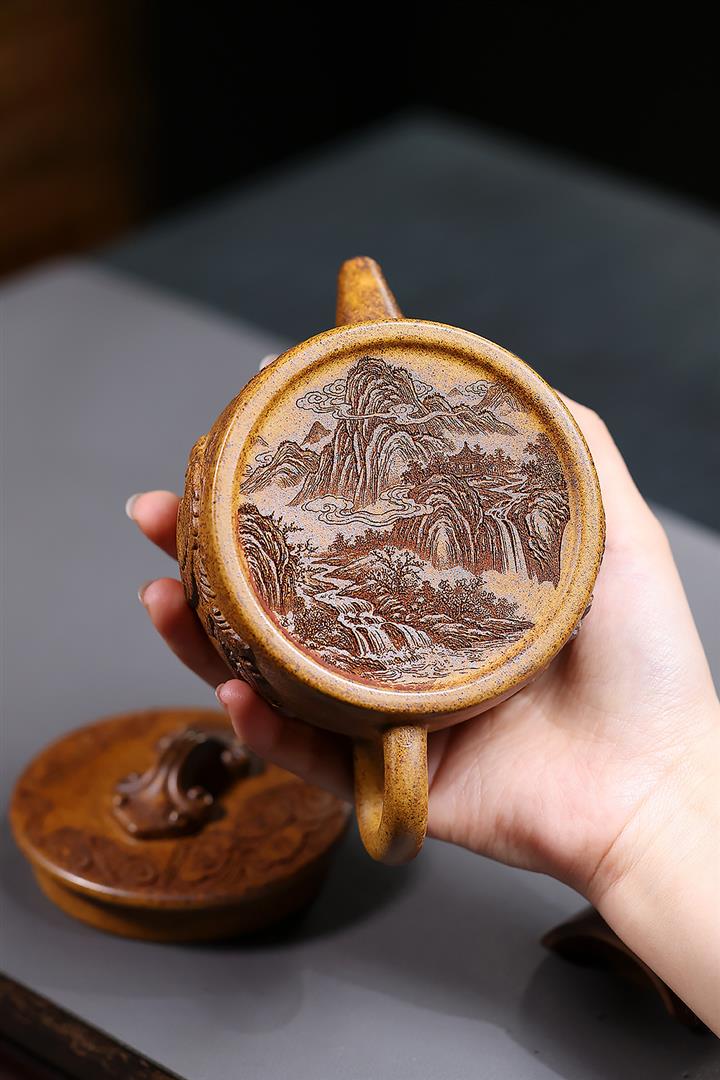 320cc原礦龍骨金砂柴窯山河金鐘泡茶壺POT10159