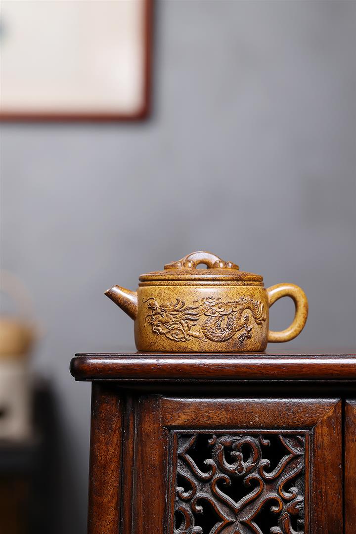 250cc原礦高溫段泥龍鳳呈祥漢瓦泡茶壺POT10150