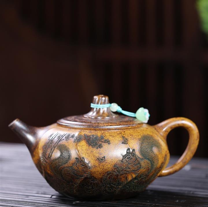 240cc原礦龍骨金砂柴窯竹影秦權泡茶壺POT10157