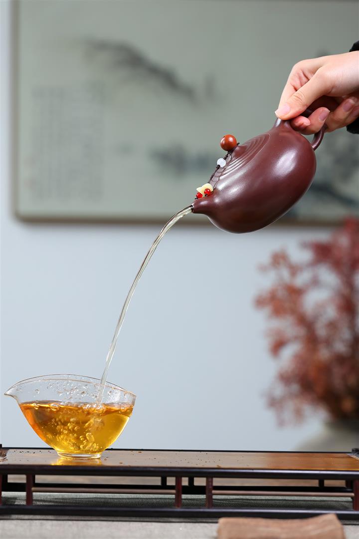 【泥料特點】砂土氣重,似淳實農民,日久使用,漸露鋒芒,養成變化,溫潤莊重。紫砂是壹種雙重氣孔結構的多孔性材質,氣孔微細,密度高。用紫砂壺沏茶,不失原味,且香不渙散,得茶之真香真味。紫砂使用越久,壺身色澤越發光亮照人,氣韻溫雅。紫砂壺長久使用器身會因撫摸擦拭,變得越發溫潤光澤。