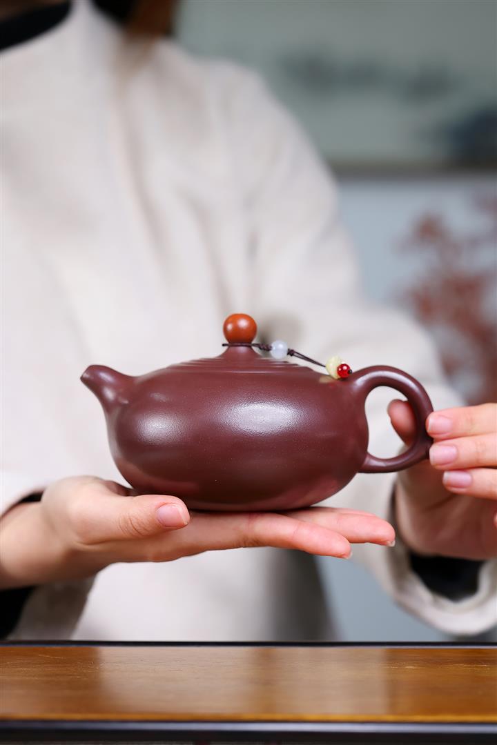 【作品介紹】此款壺形線條流暢,壺把,壺嘴,壺身壹氣呵成栩栩如生,是收藏把玩的好壺,泥料色澤古樸典雅,日久使用,漸露鋒芒,養成變化快,溫潤莊重,用其泡茶,使用的年代久,壺身就溫潤,泡出來的茶湯也就醇郁芳馨。