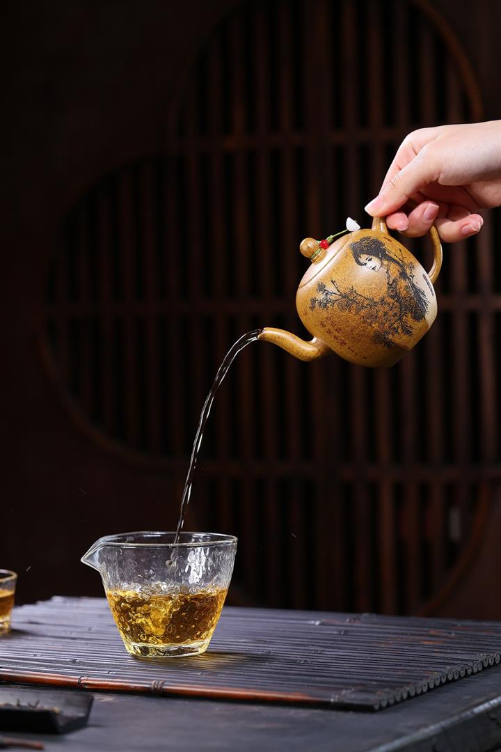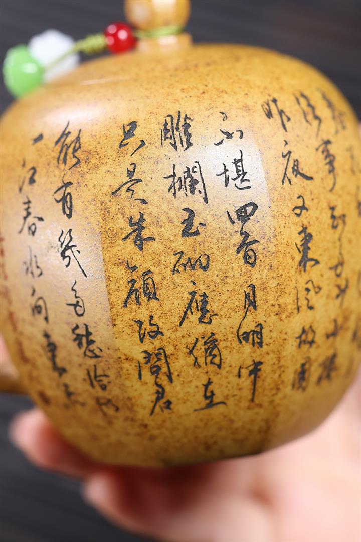 【泥料特點】砂土氣重,似淳實農民,日久使用,漸露鋒芒,養成變化,溫潤莊重。紫砂是壹種雙重氣孔結構的多孔性材質,氣孔微細,密度高。用紫砂壺沏茶,不失原味,且香不渙散,得茶之真香真味。紫砂使用越久,壺身色澤越發光亮照人,氣韻溫雅。紫砂壺長久使用器身會因撫摸擦拭,變得越發溫潤光澤。