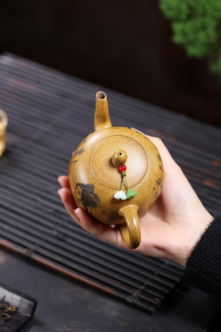 【作品介紹】此款壺形線條流暢,壺把,壺嘴,壺身壹氣呵成栩栩如生,是收藏把玩的好壺,泥料色澤古樸典雅,日久使用,漸露鋒芒,養成變化快,溫潤莊重,用其泡茶,使用的年代久,壺身就溫潤,泡出來的茶湯也就醇郁芳馨。