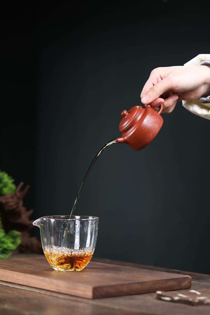 【泥料特點】砂土氣重,似淳實農民,日久使用,漸露鋒芒,養成變化,溫潤莊重。紫砂是壹種雙重氣孔結構的多孔性材質,氣孔微細,密度高。用紫砂壺沏茶,不失原味,且香不渙散,得茶之真香真味。紫砂使用越久,壺身色澤越發光亮照人,氣韻溫雅。紫砂壺長久使用器身會因撫摸擦拭,變得越發溫潤光澤。
