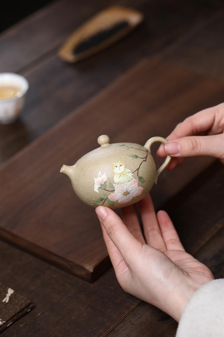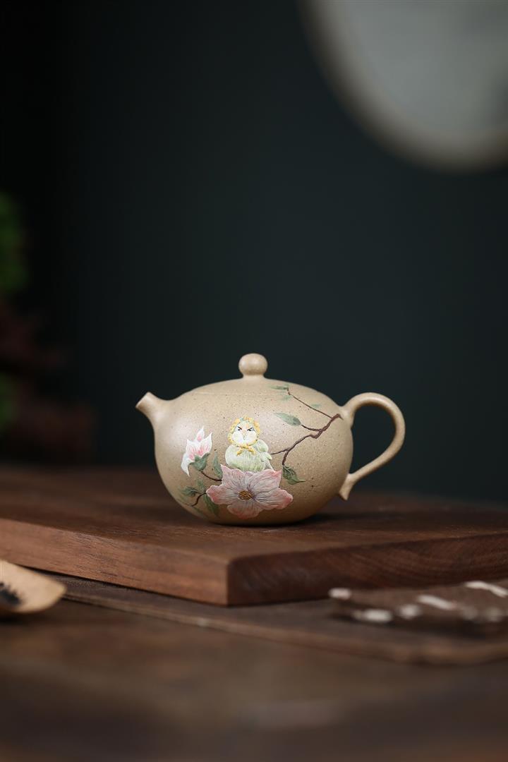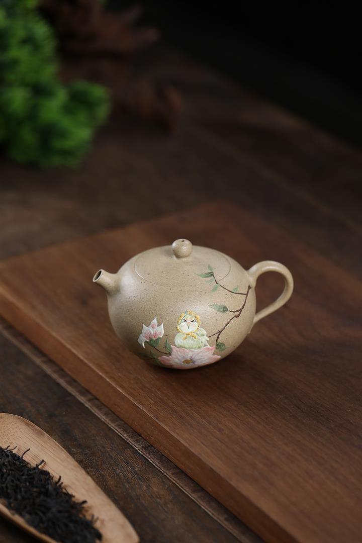 200cc原礦本山綠泥桂花與魚美人肩泡茶壺POT10177