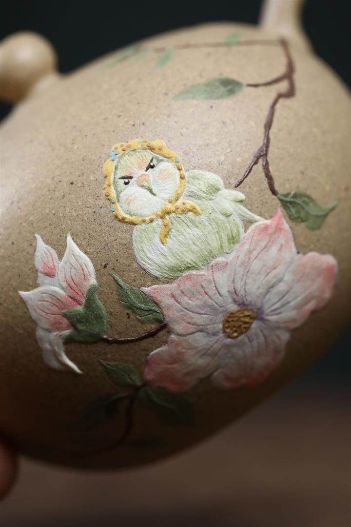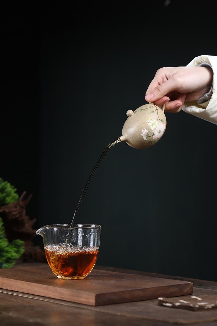 【泥料特點】砂土氣重,似淳實農民,日久使用,漸露鋒芒,養成變化,溫潤莊重。紫砂是壹種雙重氣孔結構的多孔性材質,氣孔微細,密度高。用紫砂壺沏茶,不失原味,且香不渙散,得茶之真香真味。紫砂使用越久,壺身色澤越發光亮照人,氣韻溫雅。紫砂壺長久使用器身會因撫摸擦拭,變得越發溫潤光澤。