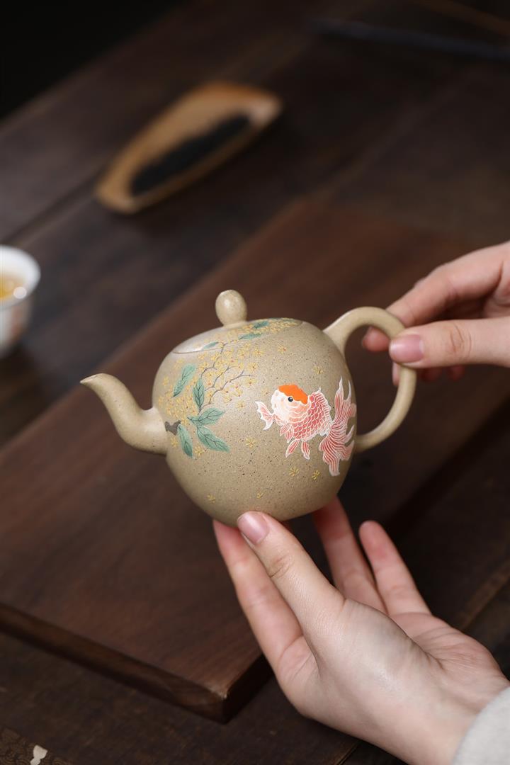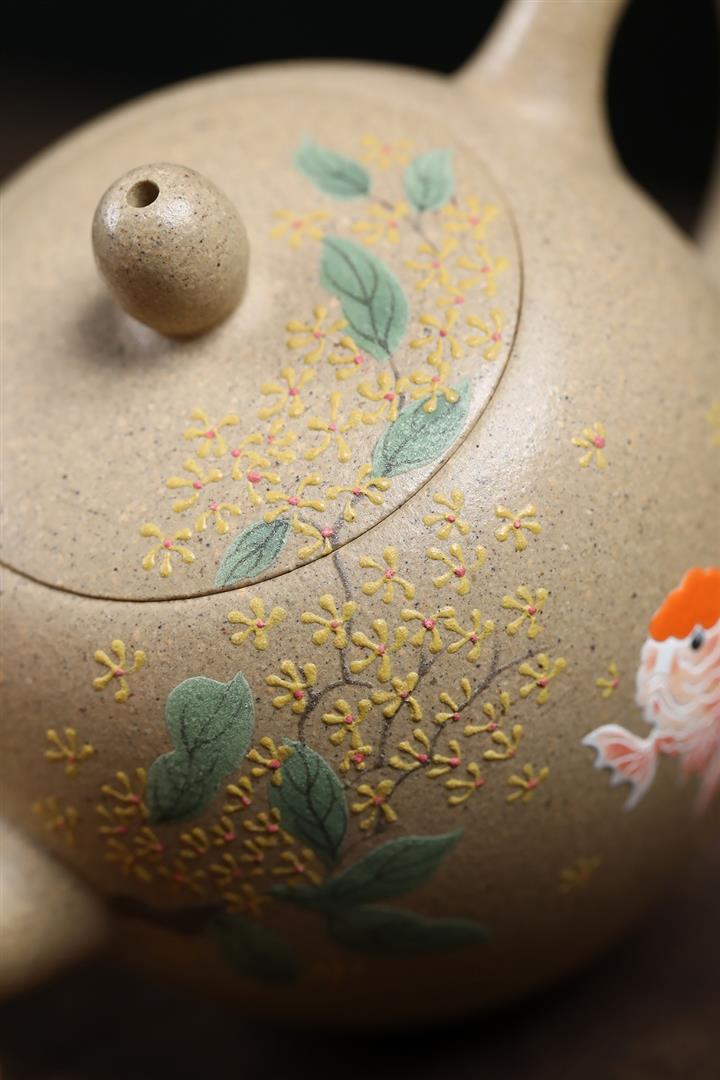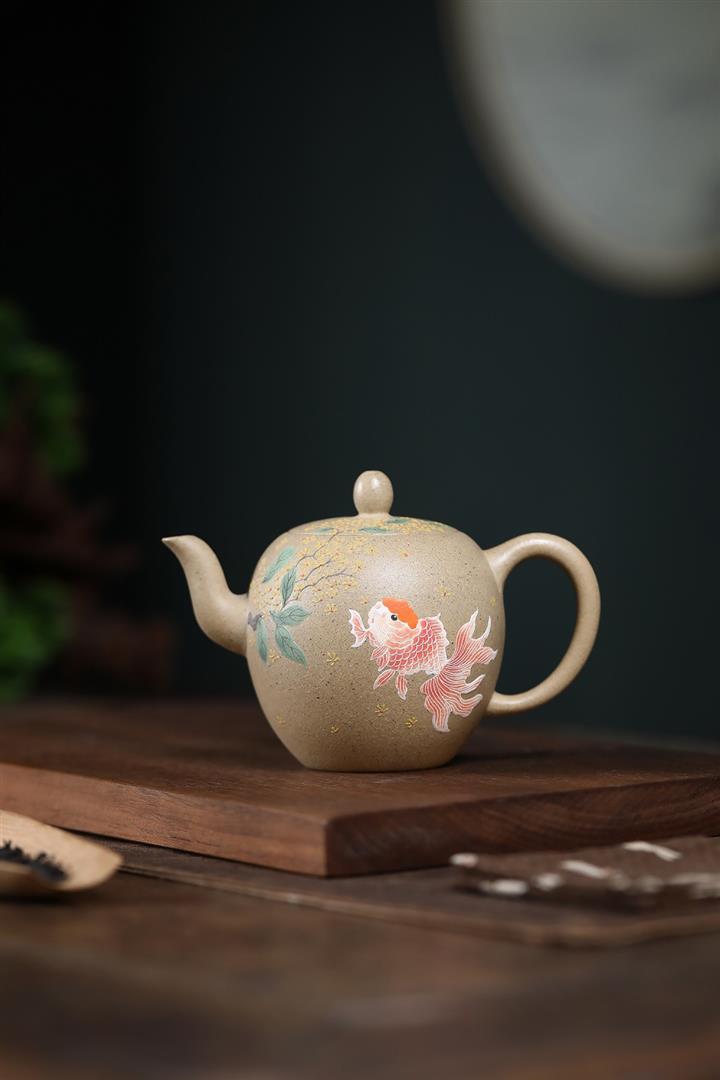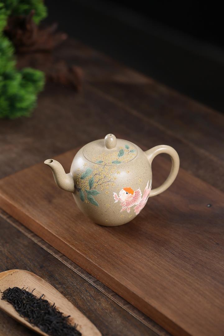 200cc原礦本山綠泥桂花與魚美人肩泡茶壺POT10177