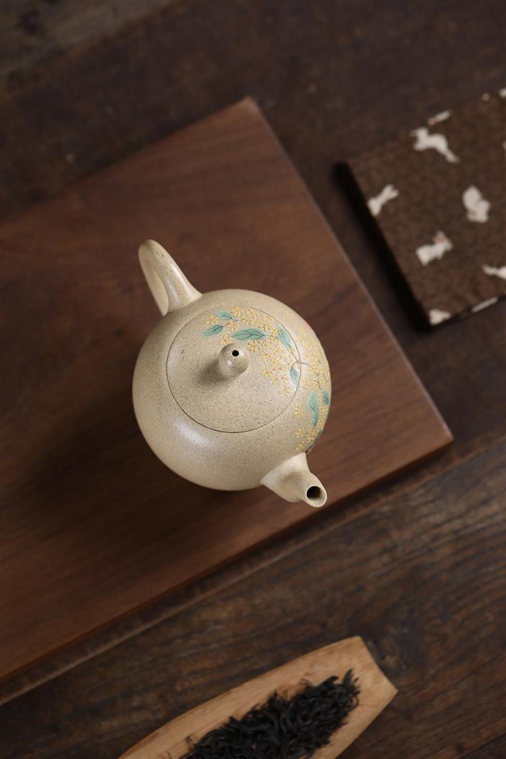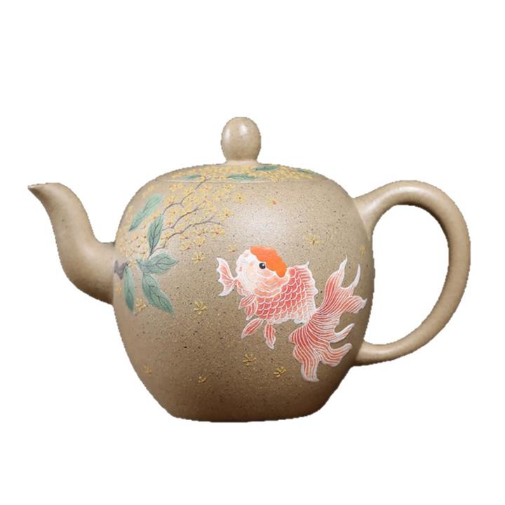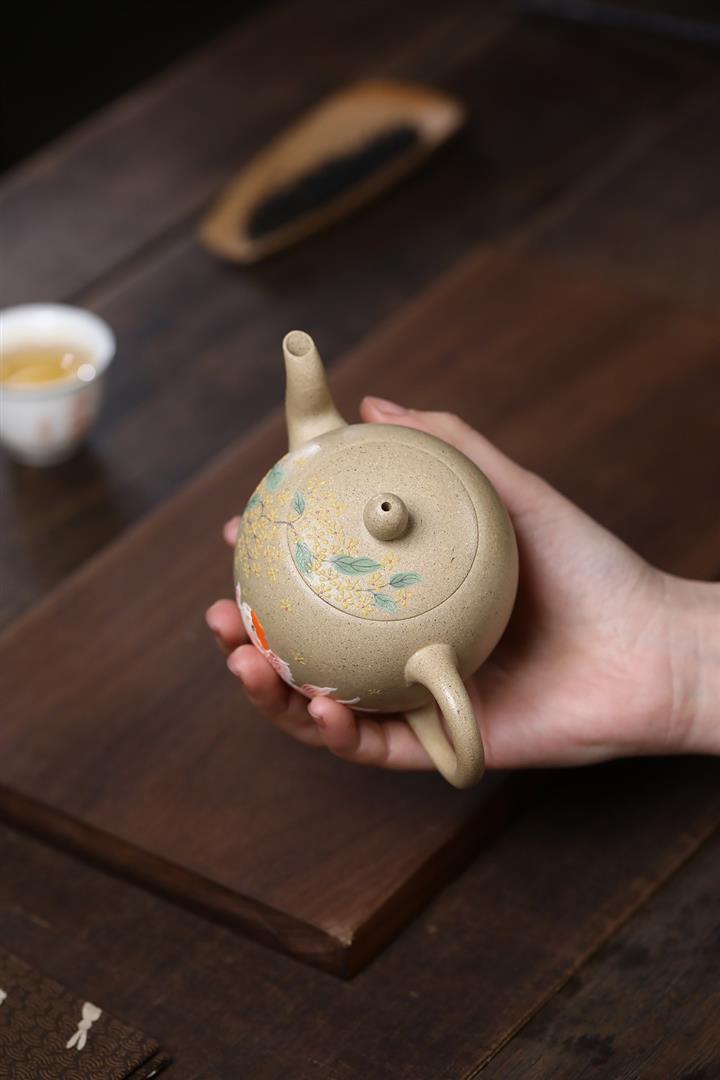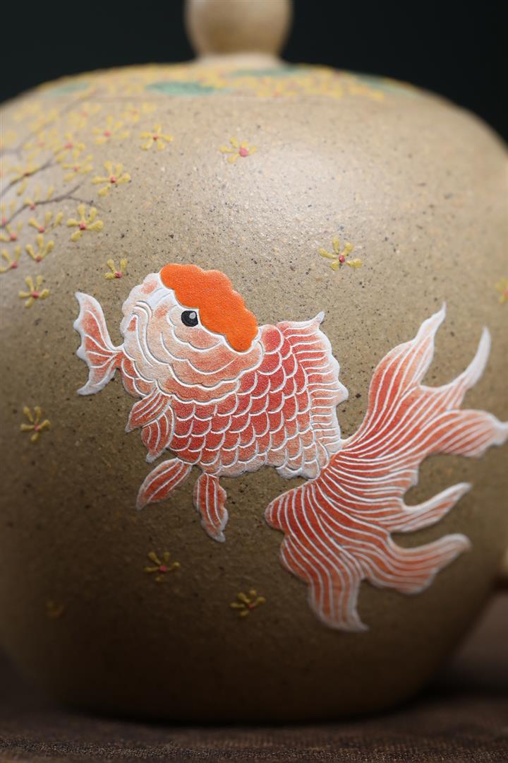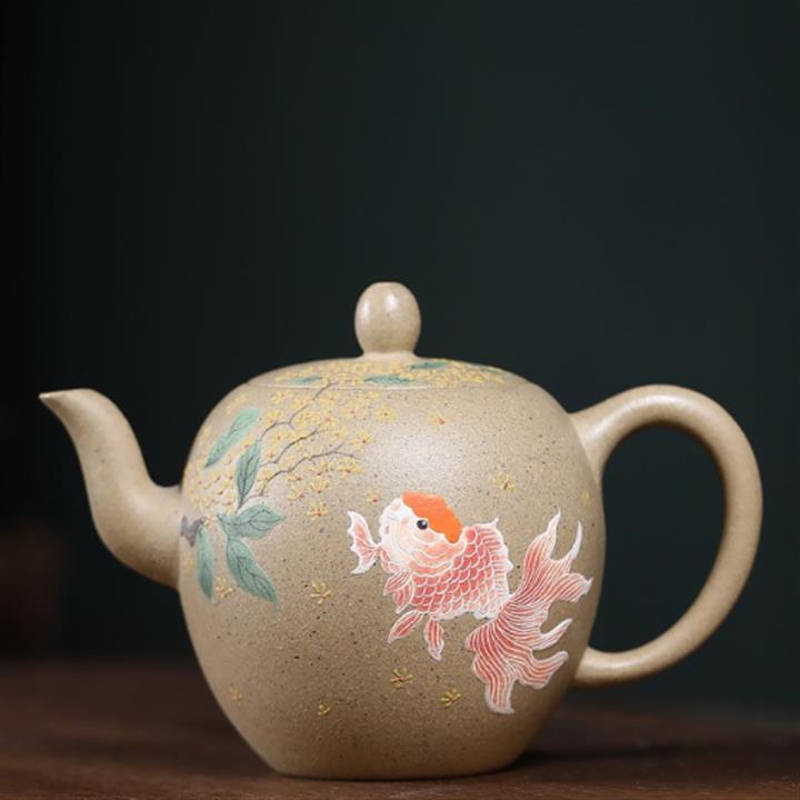 200cc原礦本山綠泥桂花與魚美人肩泡茶壺POT10177