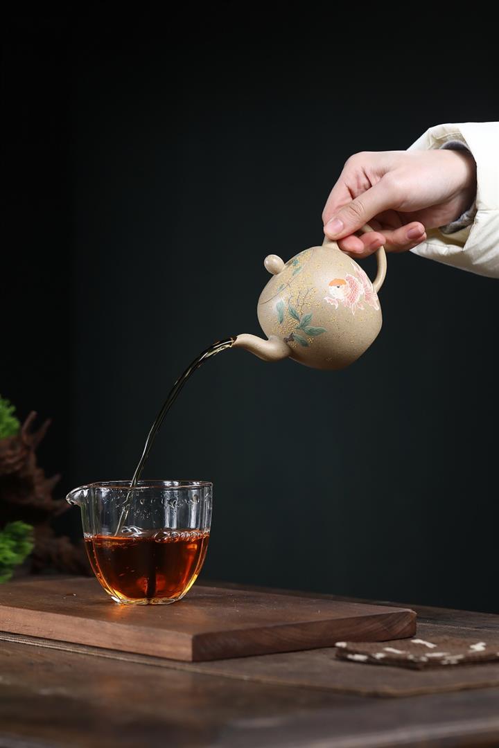 【泥料特點】砂土氣重,似淳實農民,日久使用,漸露鋒芒,養成變化,溫潤莊重。紫砂是壹種雙重氣孔結構的多孔性材質,氣孔微細,密度高。用紫砂壺沏茶,不失原味,且香不渙散,得茶之真香真味。紫砂使用越久,壺身色澤越發光亮照人,氣韻溫雅。紫砂壺長久使用器身會因撫摸擦拭,變得越發溫潤光澤。