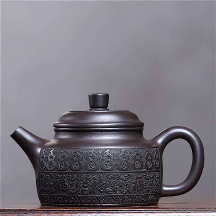 300cc原礦玄鐵石黃百福德鐘泡茶壺POT10186