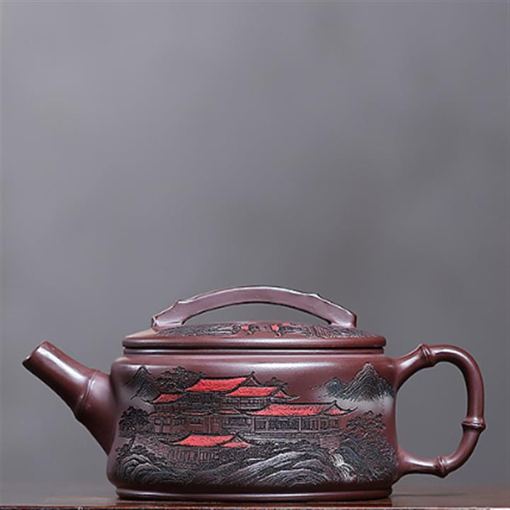330cc原礦石紅彩繪山水漢瓦泡茶壺POT10187