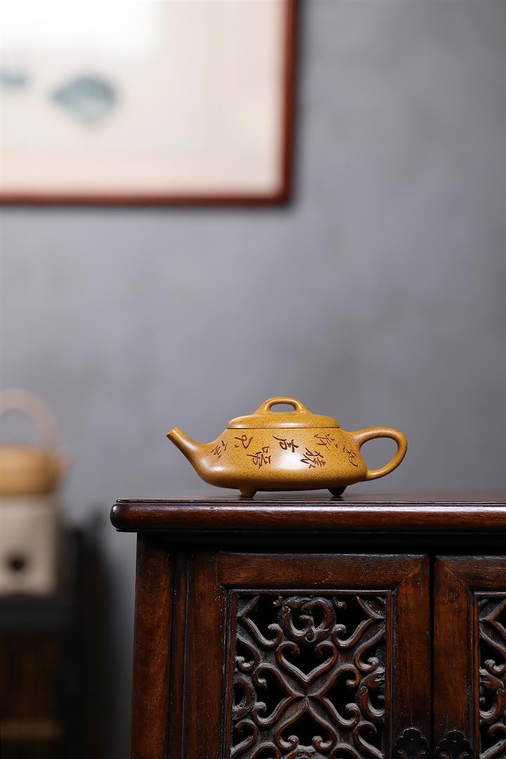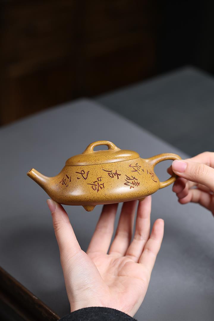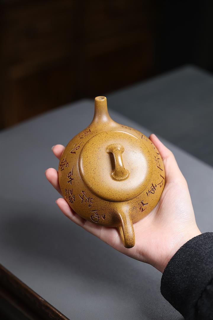 【作品介紹】此款壺形線條流暢,壺把,壺嘴,壺身壹氣呵成栩栩如生,是收藏把玩的好壺,泥料色澤古樸典雅,日久使用,漸露鋒芒,養成變化快,溫潤莊重,用其泡茶,使用的年代久,壺身就溫潤,泡出來的茶湯也就醇郁芳馨。