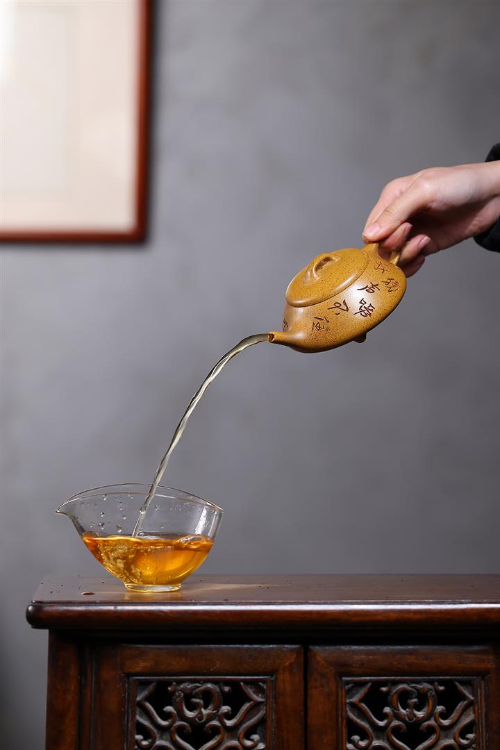 【泥料特點】砂土氣重,似淳實農民,日久使用,漸露鋒芒,養成變化,溫潤莊重。紫砂是壹種雙重氣孔結構的多孔性材質,氣孔微細,密度高。用紫砂壺沏茶,不失原味,且香不渙散,得茶之真香真味。紫砂使用越久,壺身色澤越發光亮照人,氣韻溫雅。紫砂壺長久使用器身會因撫摸擦拭,變得越發溫潤光澤。