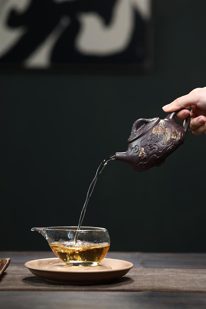 【泥料特點】砂土氣重,似淳實農民,日久使用,漸露鋒芒,養成變化,溫潤莊重。紫砂是壹種雙重氣孔結構的多孔性材質,氣孔微細,密度高。用紫砂壺沏茶,不失原味,且香不渙散,得茶之真香真味。紫砂使用越久,壺身色澤越發光亮照人,氣韻溫雅。紫砂壺長久使用器身會因撫摸擦拭,變得越發溫潤光澤。